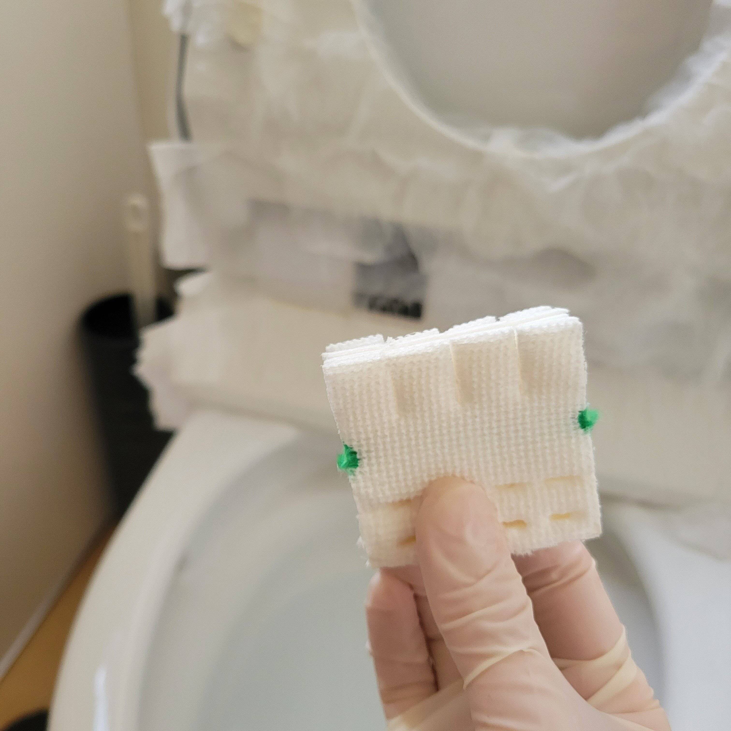 流せるトイレブラシを持ち、そのまま手を突っ込んで上、横、奥のほうまで擦ってみてください。