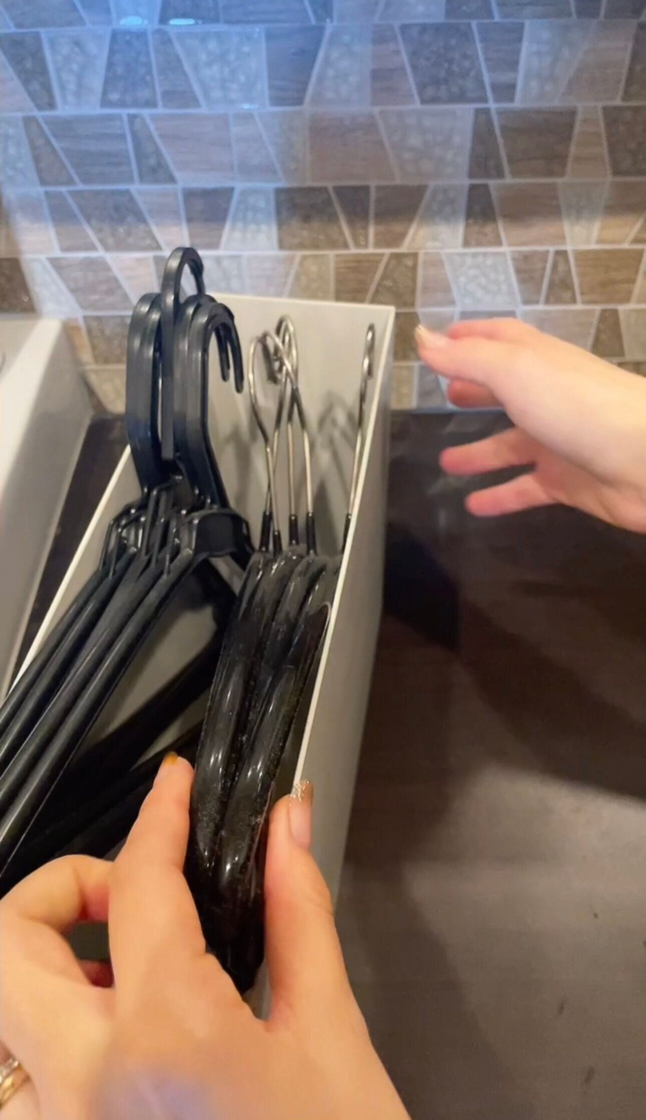 嵩張りがちなハンガーもファイルボックスできれいにしまっておきましょう。
