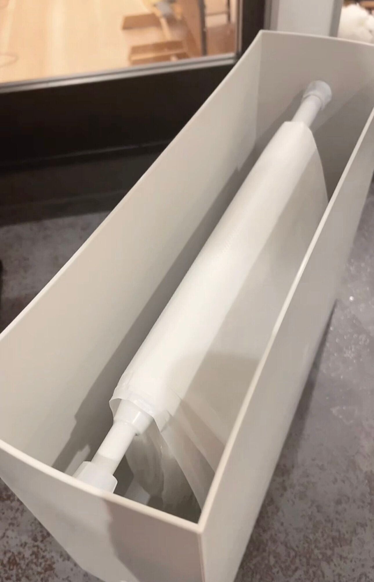 ファイルボックスに突っ張り棒を取り付ければ、ゴミ袋ストッカーに!