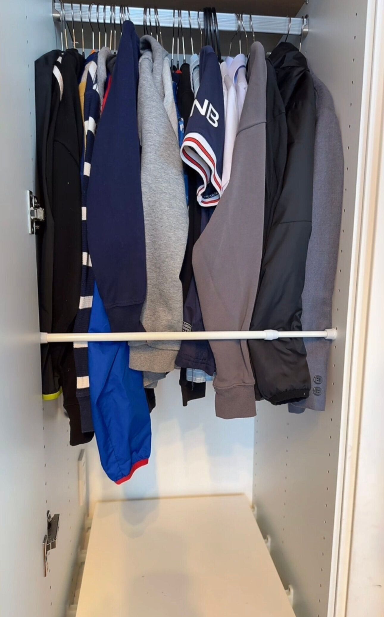 やり方は、洋服の袖の高さに突っ張り棒を取り付けるだけ♪