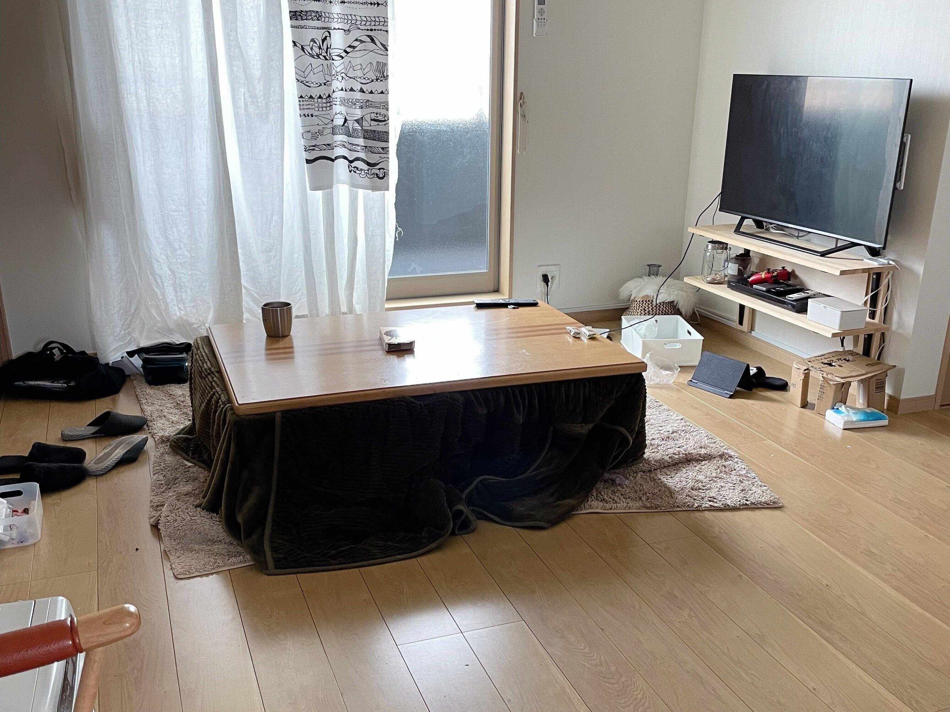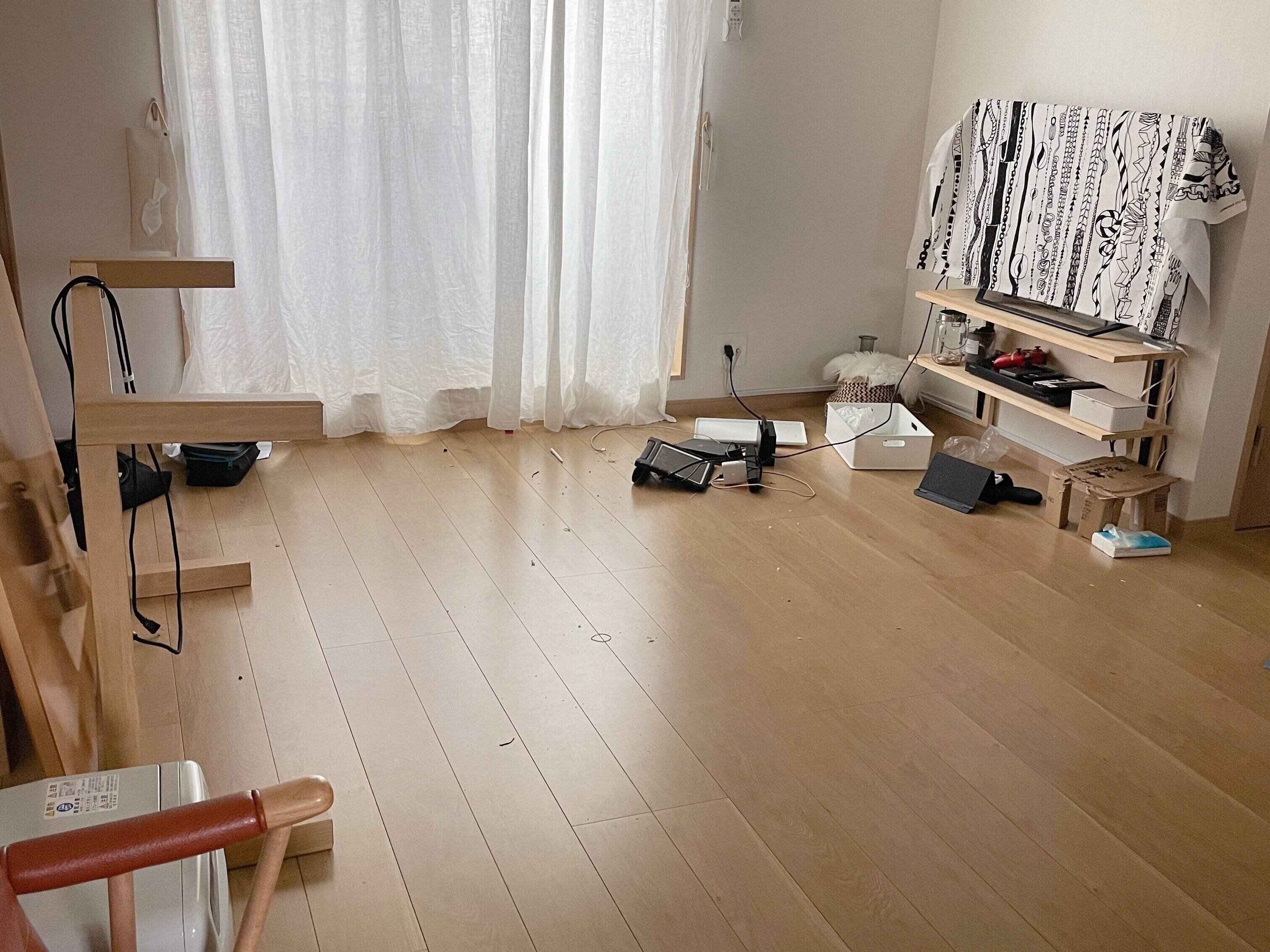 初めは、床やテーブルに物がたくさん落ちている状態でした。