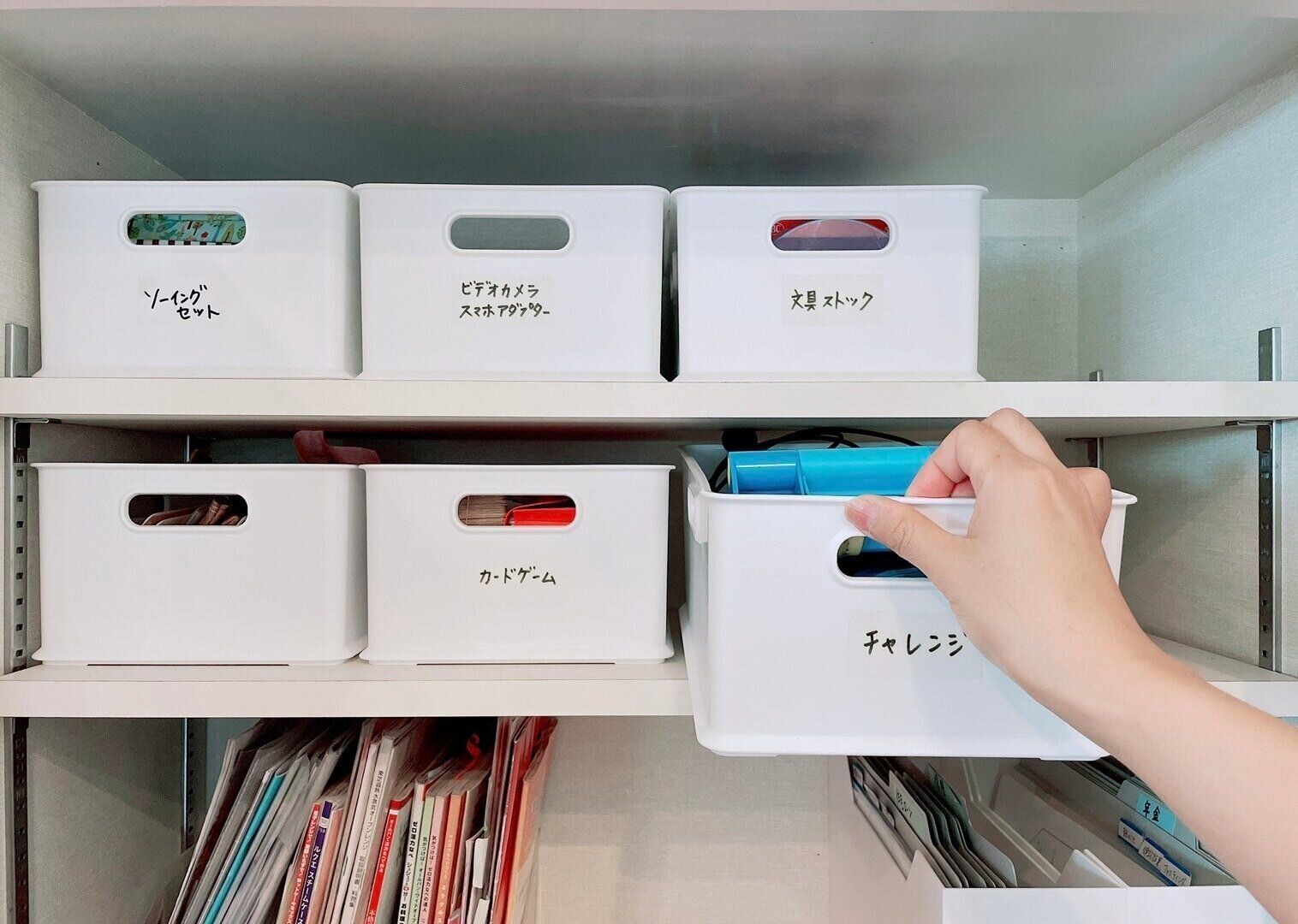 扉を開けて、引き出しを開けて、ケースを取り出す…といったように戻すまでのアクション数が多いとそれだけで面倒ですよね。ボックスに入れるだけ、置くだけ、といったようにアクション数が少ないほど片づけがラクになりますよ。