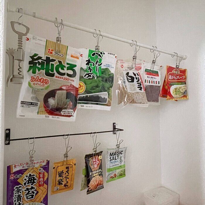 定番乾物はBOX収納よりも、吊るす収納がおすすめです。
