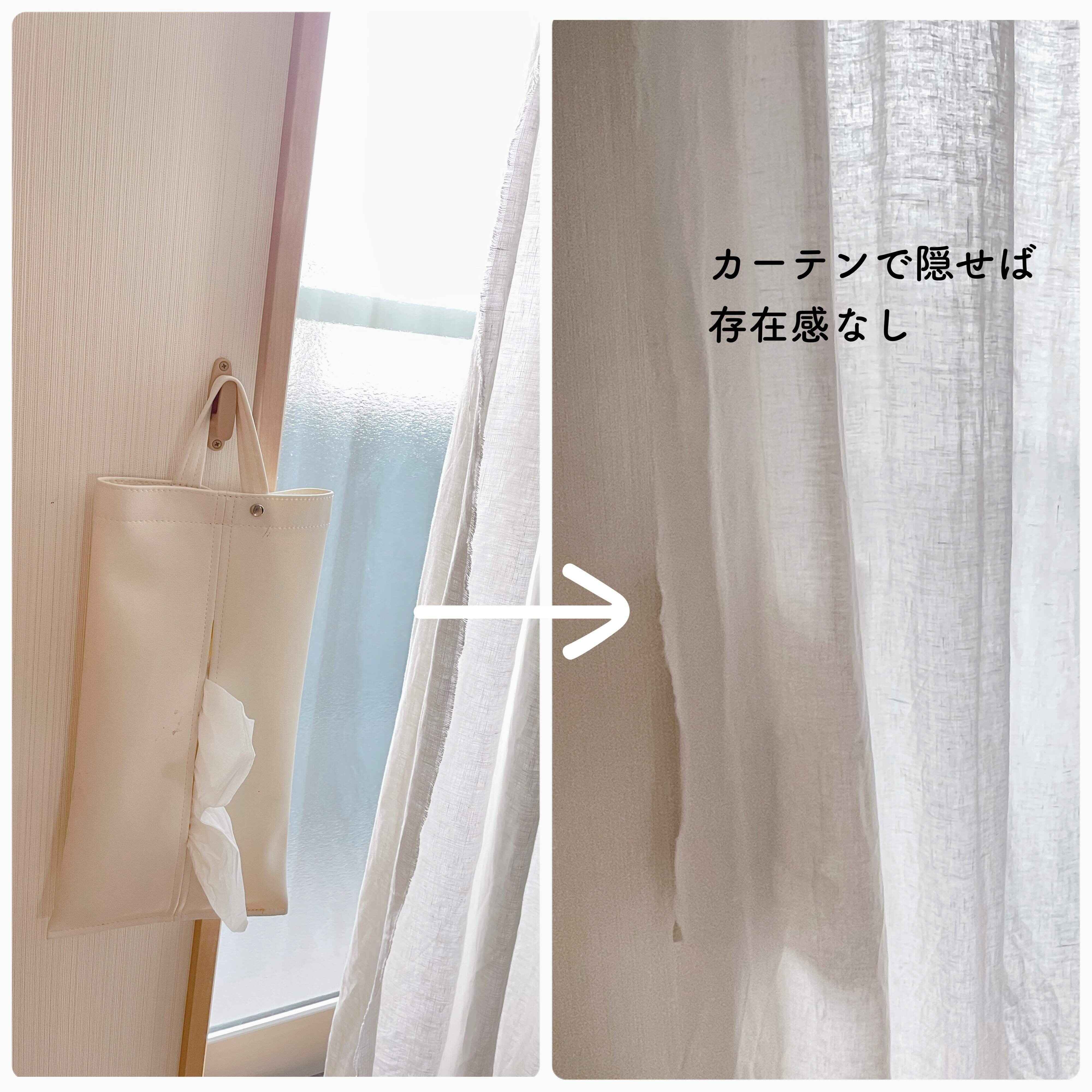 そこで、カバーを壁色と同じ白にして掛けることに。ふさかけに掛ければカーテンに隠れ、存在感を消すことができました。