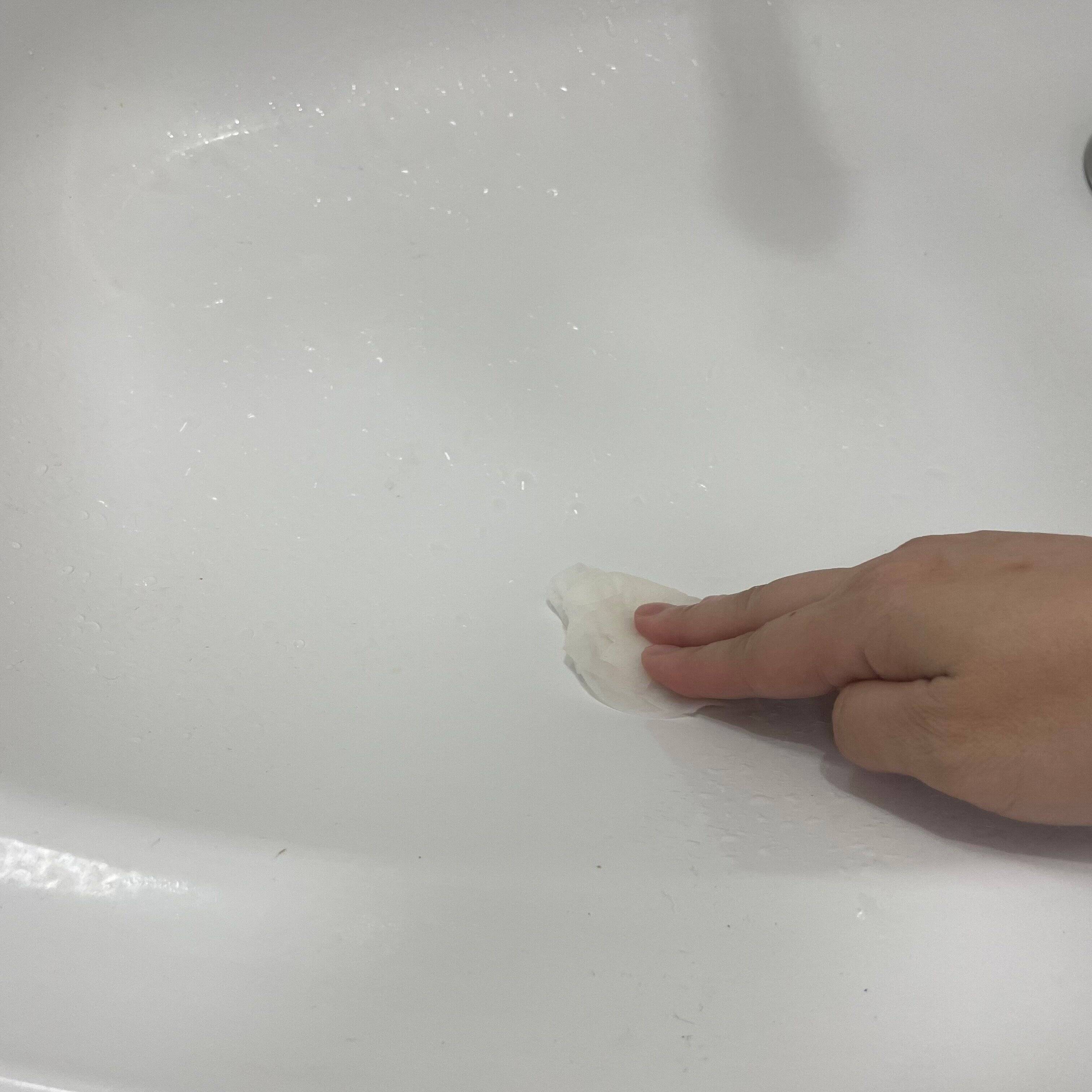我が家では、洗面台掃除は専用スポンジを使わずに、使用済みのフェイスパックのシートを使っています。