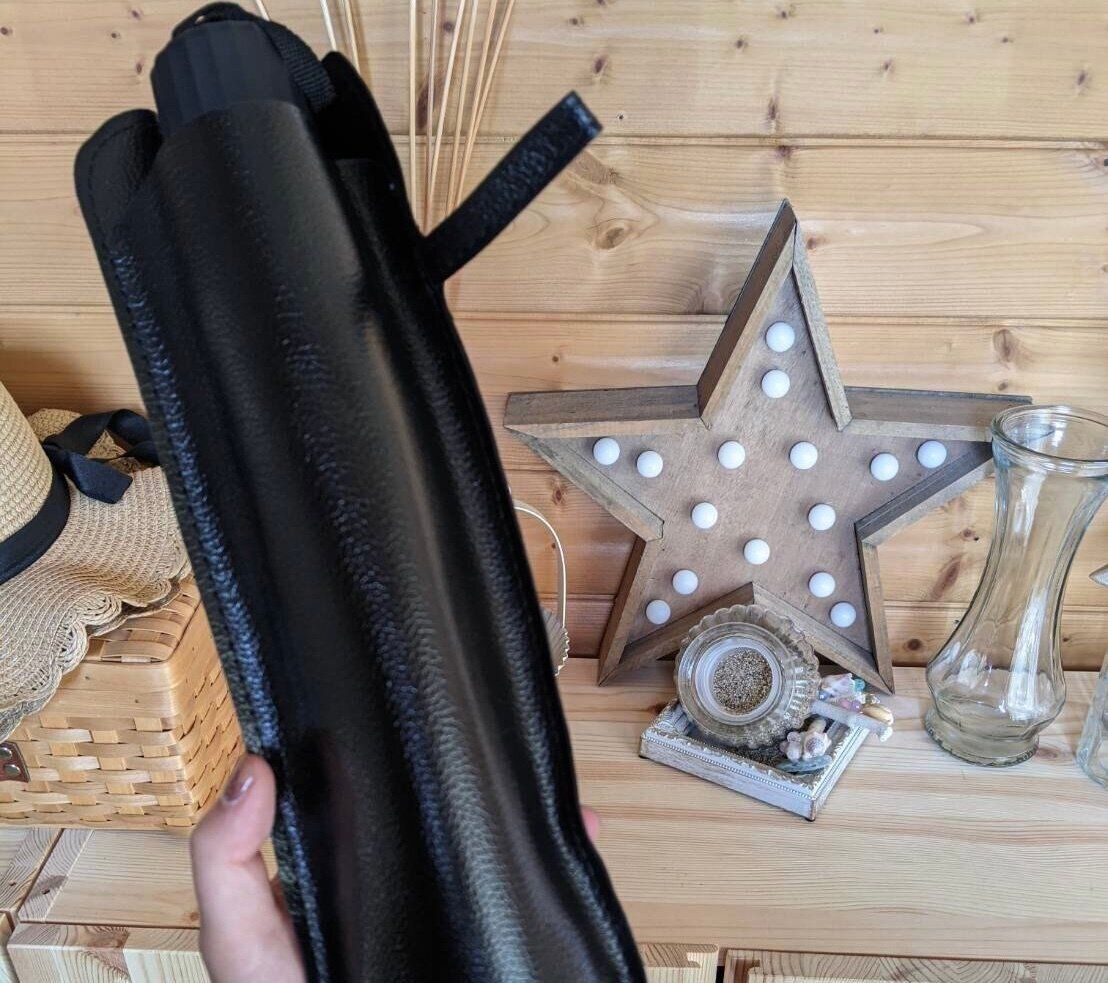 どのメーカーの「傘型サンシェード」を見ても、付属する「専用ケース」はスリムなモノばかり。傘本体をキレイに畳まない限りは収納できないサイズ感で、コンパクトにするために時間を要することに苛立ちを感じる人も多いのではないでしょうか?