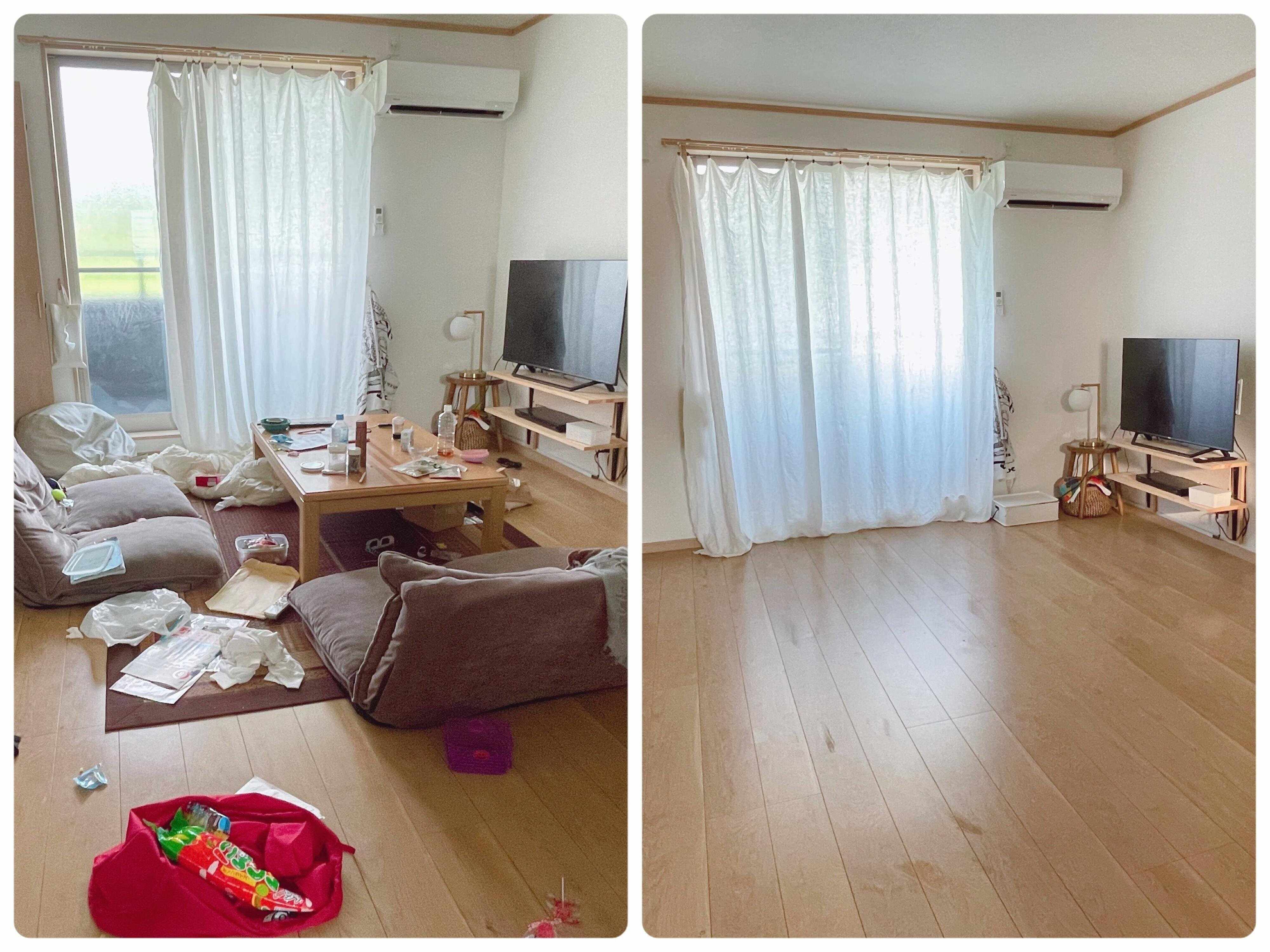 どちらにせよ生活していれば散らかりますが、子どもが散らかした範囲だけ片づければ良いので身体の負担もかかりにくいです。
