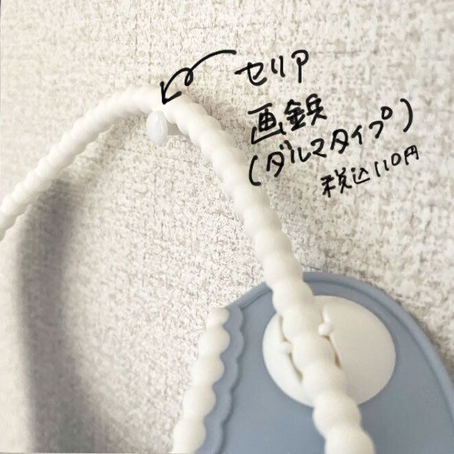 子どもの食事エプロン、イヤホンなど軽いモノは画鋲で引っかけて出しっぱなしです。やはり毎日使うモノなので、箱などにしまうより手軽ですし高さ調整も簡単なので気に入っています。ただ壁に穴ができるので心配な方は、穴埋めの補修を調べておくのをオススメします。私はセリアのダルマタイプの画鋲(110円)を使っていますが、いろんな色や形があるのでお気に入りを探すのもオススメです。