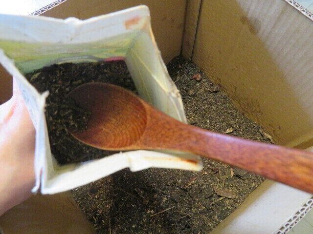 基材と発酵促進剤を袋の半分ずつ入れて混ぜ、準備完了です。