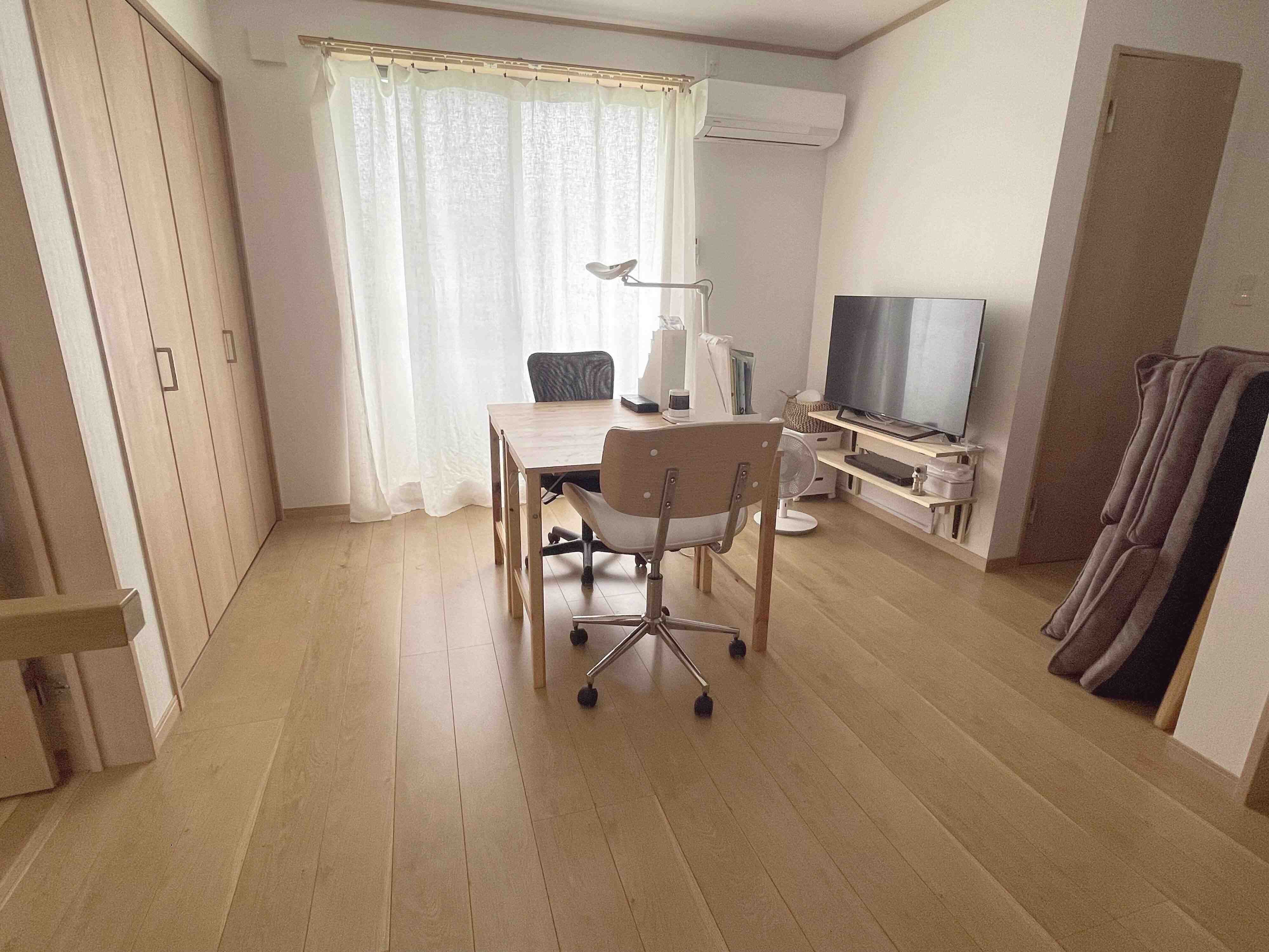 普段は座卓を置いていますが、メリハリをつけたい時にはあえて学習机をリビングのど真ん中に持ってくることも。