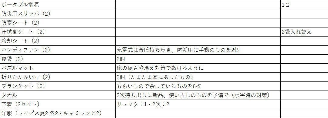 以前にも一度使ったことがありましたが、改めて備蓄のリストを参考に見直してみました。