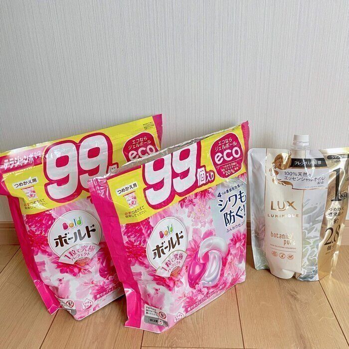 逆にリンスやトリートメントは女性陣しか使わないため減りも遅く、ストックは持たないようにしています。