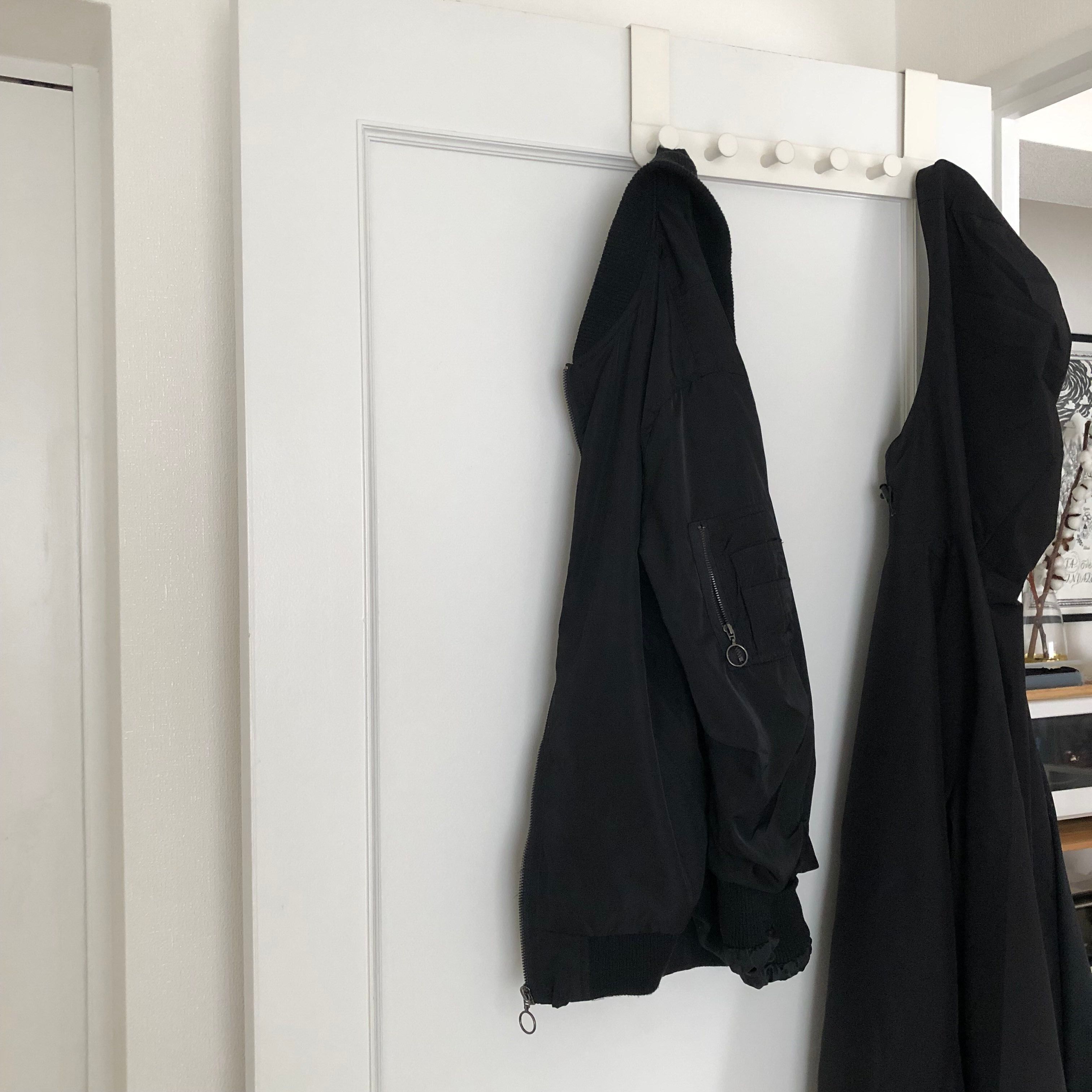 鴨居フックやドアハンガーも省スペースで使いやすいです。