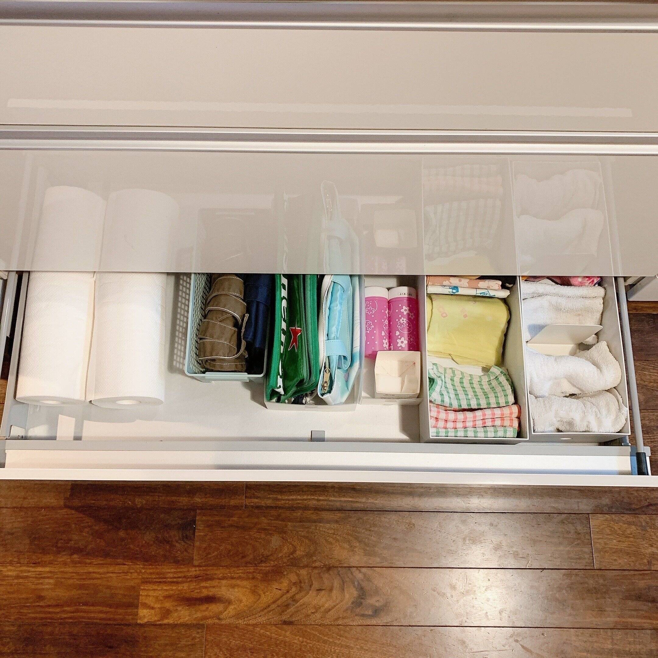 食器用洗剤、キッチン掃除グッズ、アルミホイル、ラップ、袋、布巾など、消耗品も多く存在するキッチン。それぞれのものもストックの個数や、スペースに対しての適正量を決め、必要以上の物を持たない意識をしてみましょう。1箇所に集めることによって、どれだけの物を所有しているかをまずは知り、その後自分の管理できる量、適正量などを決めていきましょう。