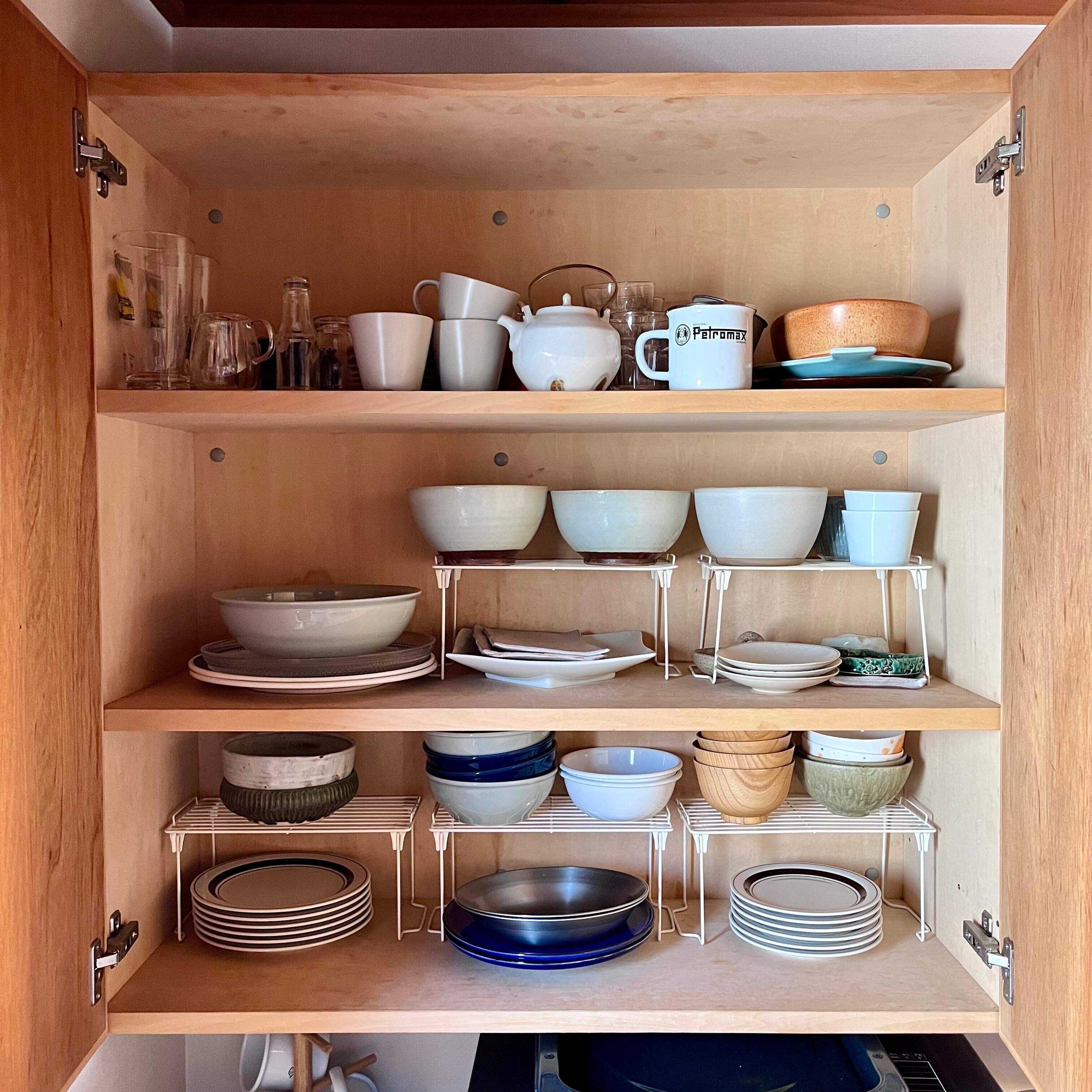 食器はキッチンの中でも一番片づけが難しい種類なので、ある程度整理力がついてから最後に取り掛かりましょう。欠けている物、1年以上使っていない物、くすんでいる物などないか、1つ1つ手に取って確認して行きましょう。食器棚が食器でぎゅうぎゅうになっている場合、収納を増やすのではなく、まずは自分が使いやすい量まで調整してみましょう。