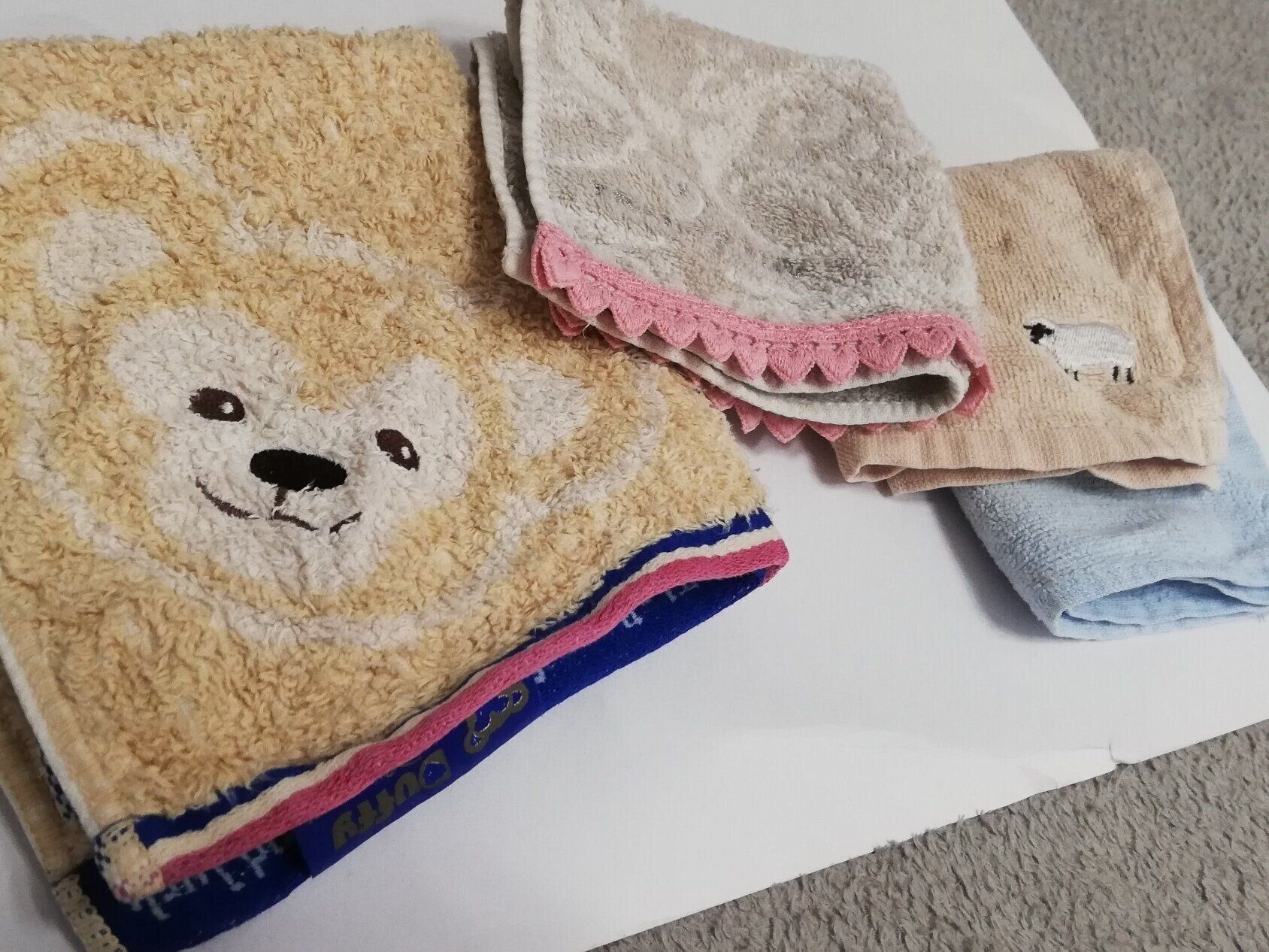 自分のハンカチだけのために、アイロンがけする元気もなくタオル素材のハンカチの方が吸収力がよく私には使いやすいので、アイロンが必要な生地のハンカチはサヨナラしました!