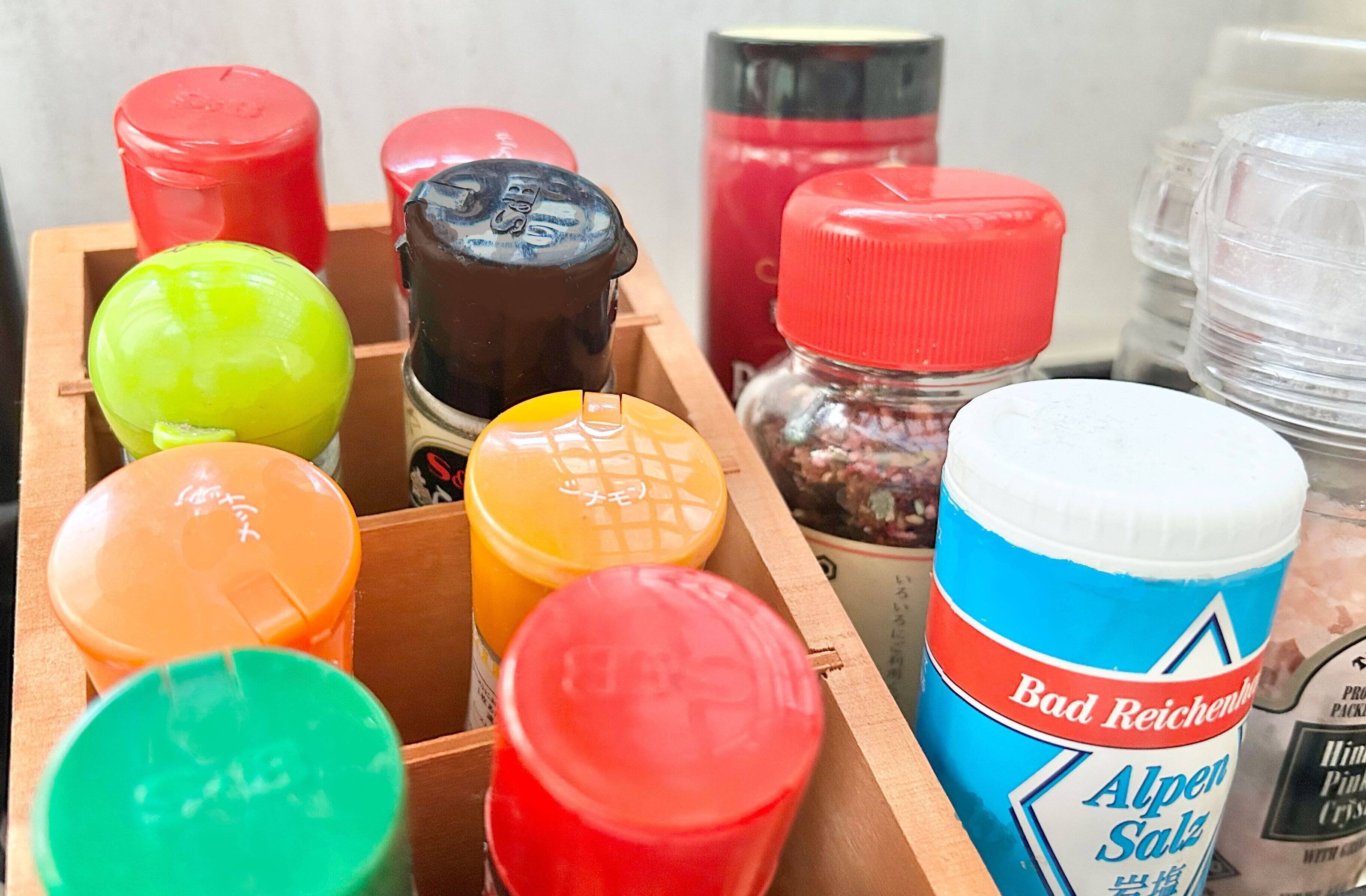 七味や胡椒、ナツメグなど……スパイス系の小さなビン。そのまま立てておくと別のものを取ろうとして倒してしまったりと置き場所に困っていませんか?