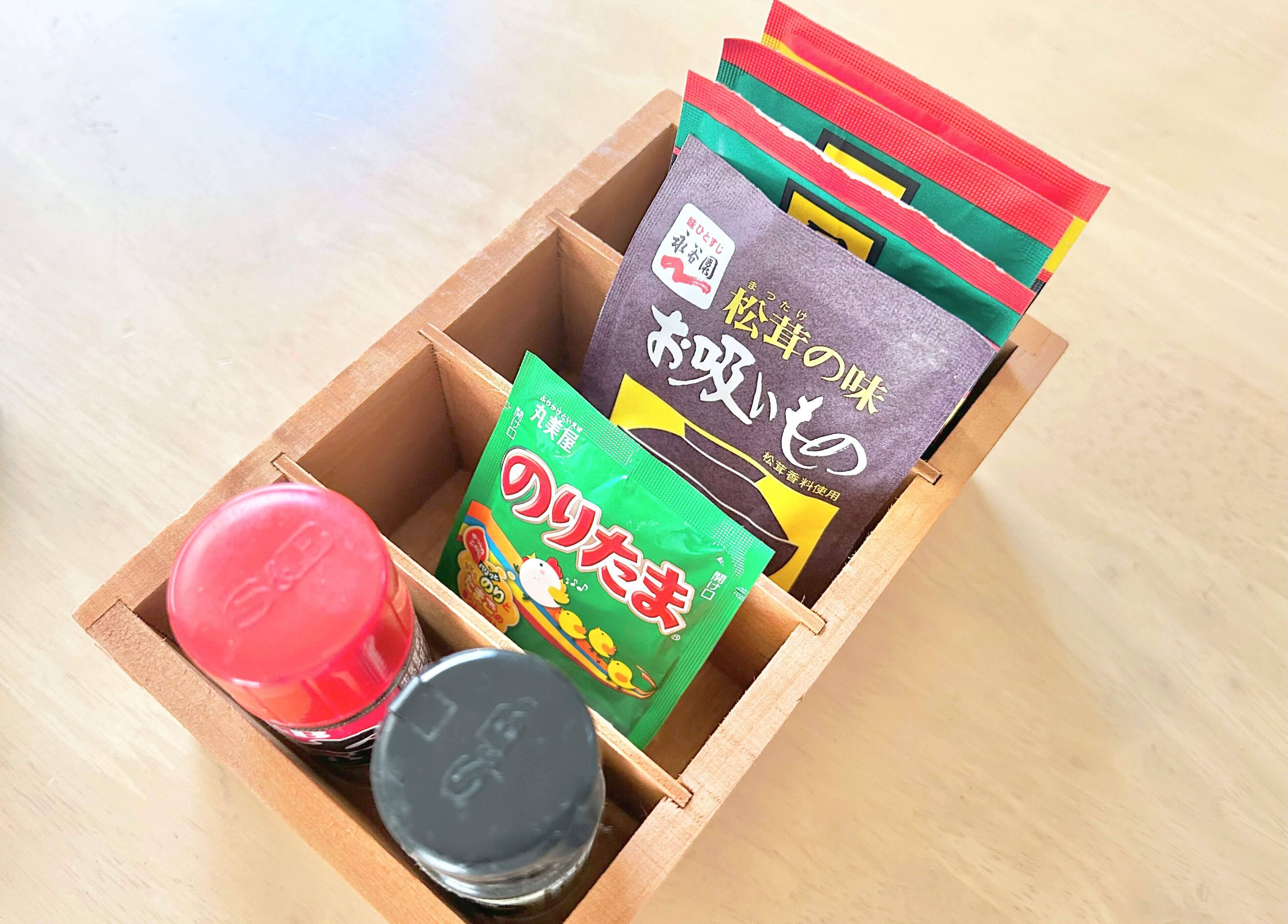 スパイス収納以外にも活用でき、スパイスの他にも、ふりかけやお吸い物、お茶漬けの収納にも便利です。