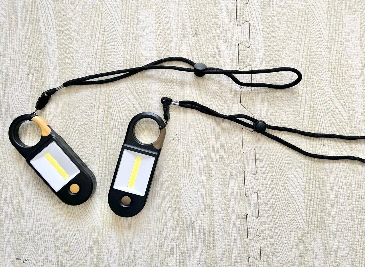 2通りのライトがついていて、ボタンを押すたびに切り替わるので、何かを注視したいときには下のライトを、首からぶら下げて歩くときには正面ライトを点灯させるなど使いやすそうです。