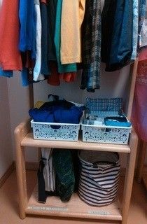 散らかりがちな衣装ケースやロッカー。出かける前になって服を探すのは時間のロスですよね。michiyoさんは、お子さんの洋服をハンガーラックにかけ、リュックや靴下はその下にラベリングして収納することに。収納場所を固定することで、お子さんが洋服を選んで着替えやすくなり、朝の準備時間が短縮されたそうです。