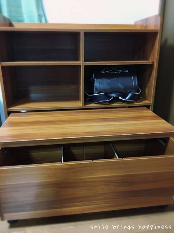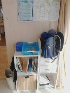 サンキュ!ブロガーみい太さんが、まず目標としてのは「めざせ!自分で返ってきた後の片付け」。特に帰宅後の片付けが容易ではなかったので、スモールステップとして「帰ったらまずはここにランドセルを片付ける」を目標に。リビングの一角に設置しているのでママも管理しやすくなっています。