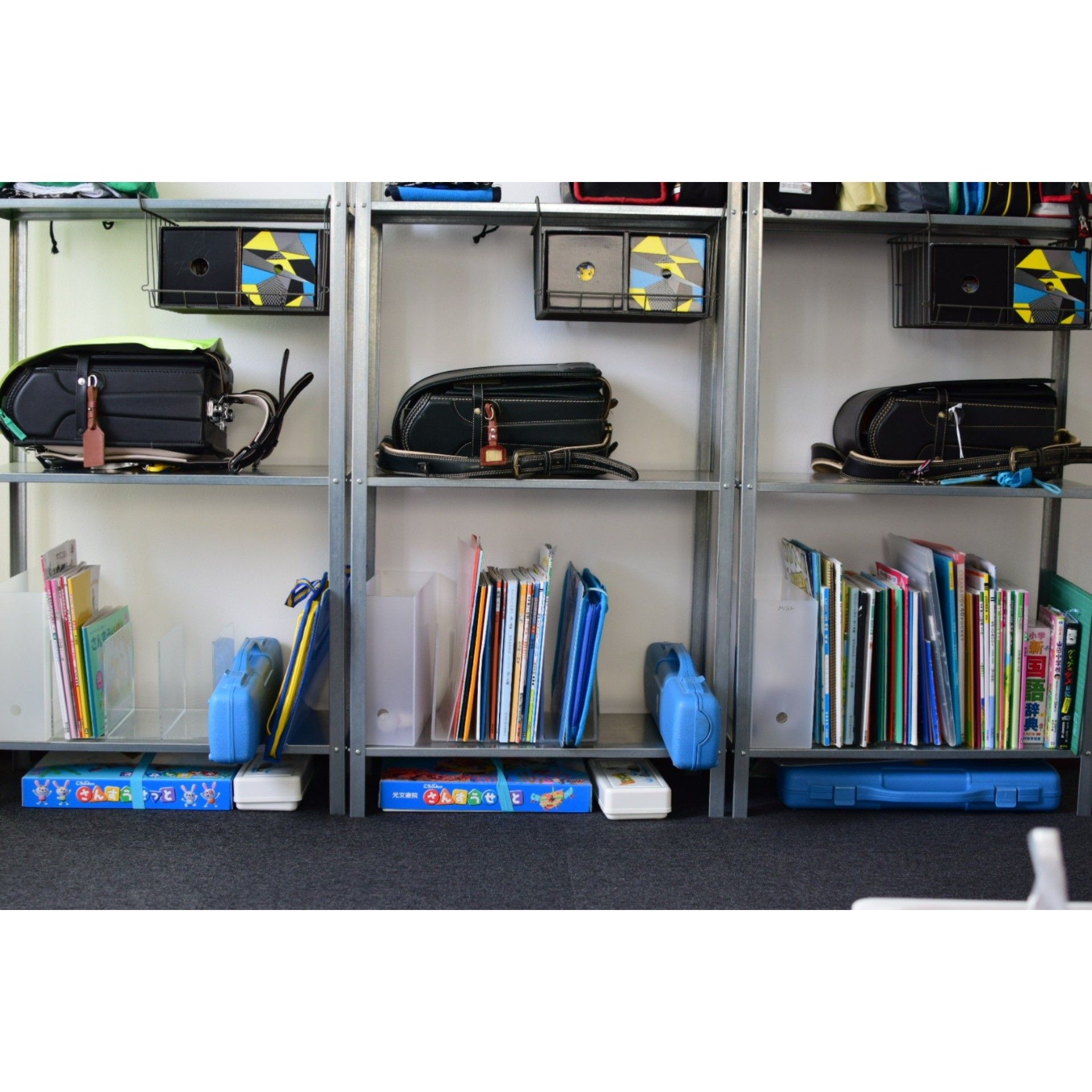 サンキュ!ブロガー根本美穂さんは、ランドセルと学習用品を一か所にまとめました。ランドセル収納の役目を果たした後も使えるようにと選んだのは、IKEAのシェルフです。学年が上がるにつけ荷物も多くなるんので最上段は空けるようにしているのだとか。設置場所は子ども部屋です。
