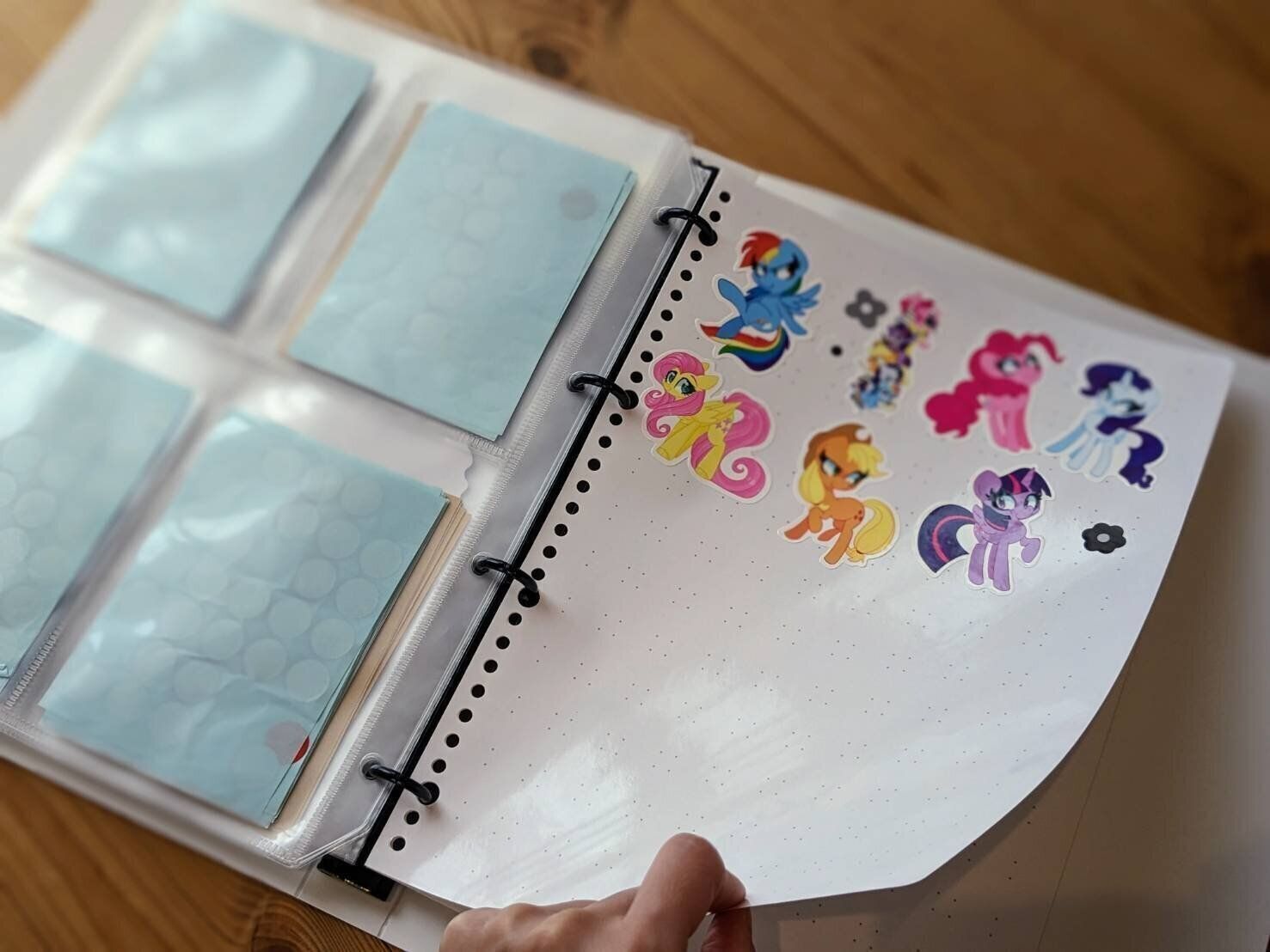 バインダーにシールを貼って剥がすことができる「剥離紙」をはさんでおけば、各々好きなようにシール遊びを楽しめます。