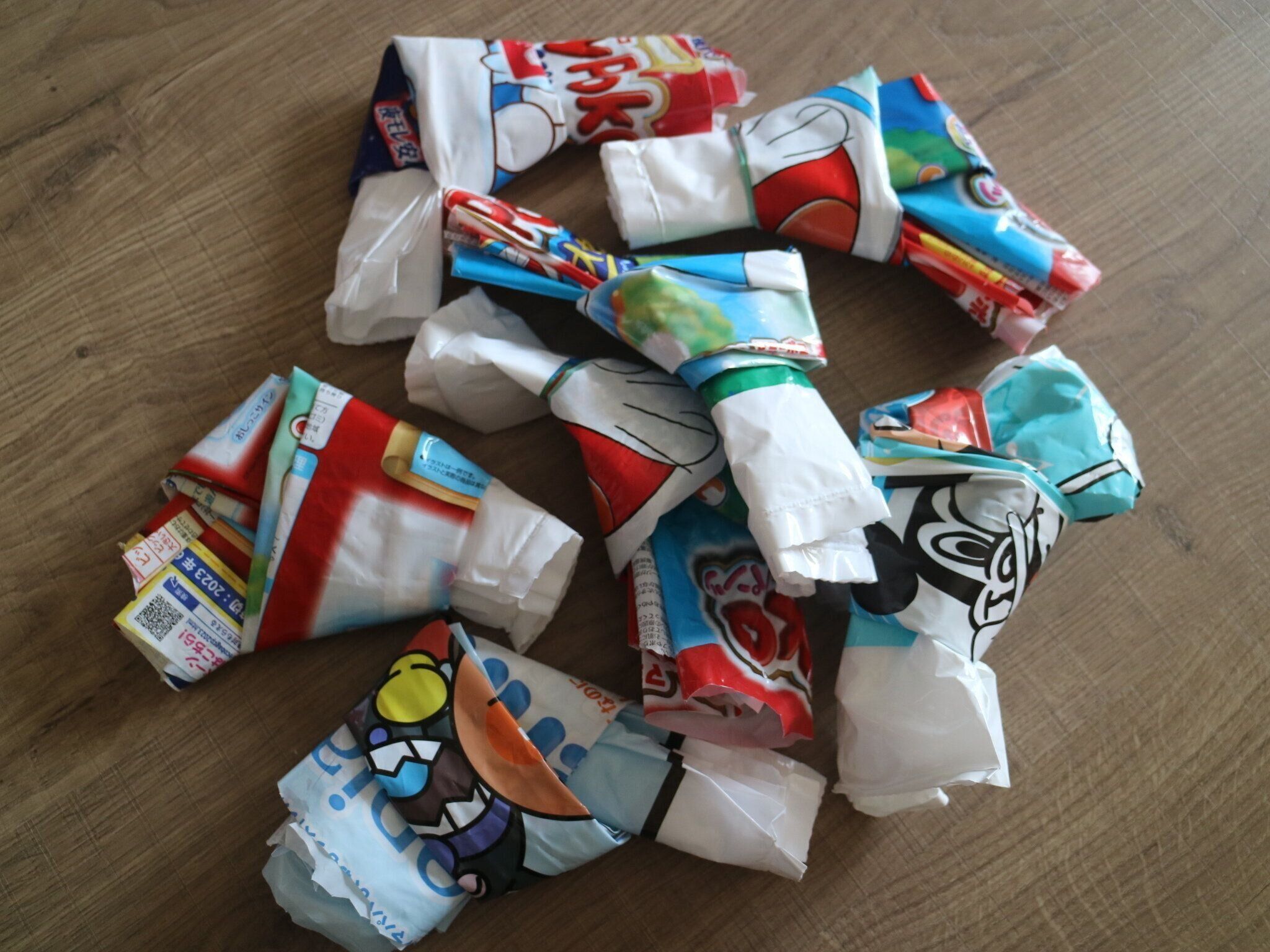 おむつの袋は持っている家庭が限定されますが、パンやお米の袋は多くの家庭でおそらくよくある袋ですよね。