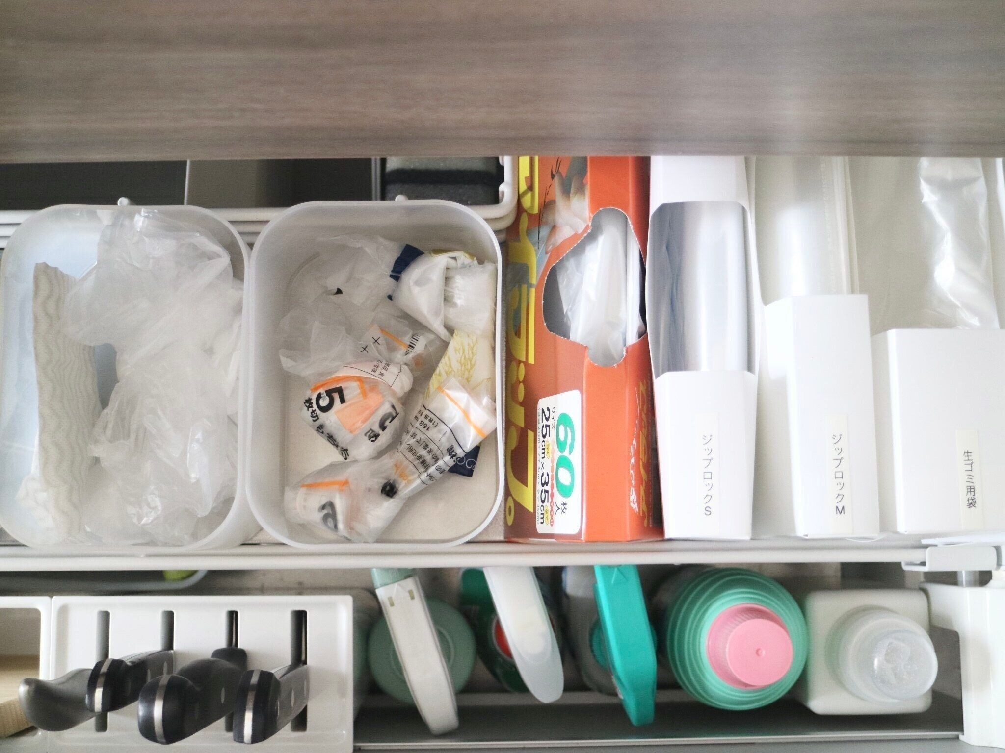 食パンはわが家ではほぼ毎日食べているので袋は頻繁に出てきます。生ゴミが多くでるだろうなと予想する日にサッとつかえるよう、シンク下の引き出しに常備しています。どうせ捨ててしまうのであれば、再利用してから捨てた方が袋代も節約できるし一石二鳥なわけです。