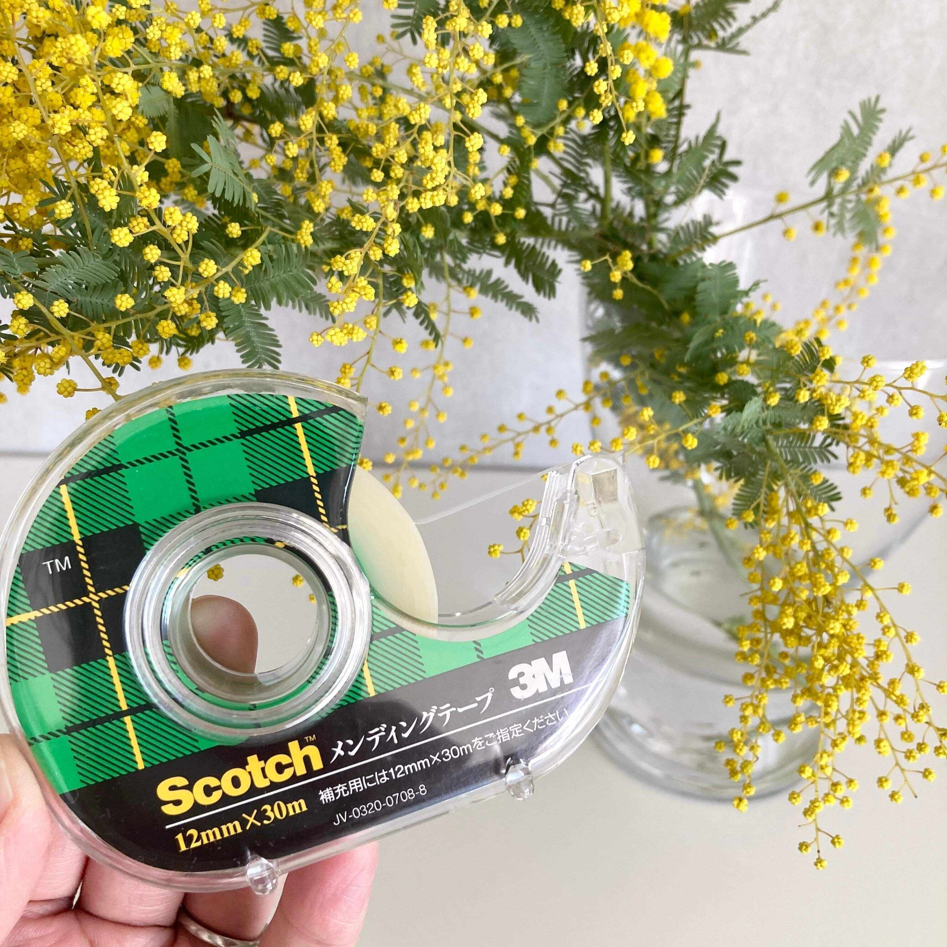 使用するアイテムはメンディングテープ!メンディングテープは本や書類の補強に使う用途で売られているもので、文具売り場や100円ショップにも売っています。メンディングテープは表面がマットでサラッとしているのが特徴で、貼っても目立ちにくくテープの粘着あとものこりにくいところがポイント。