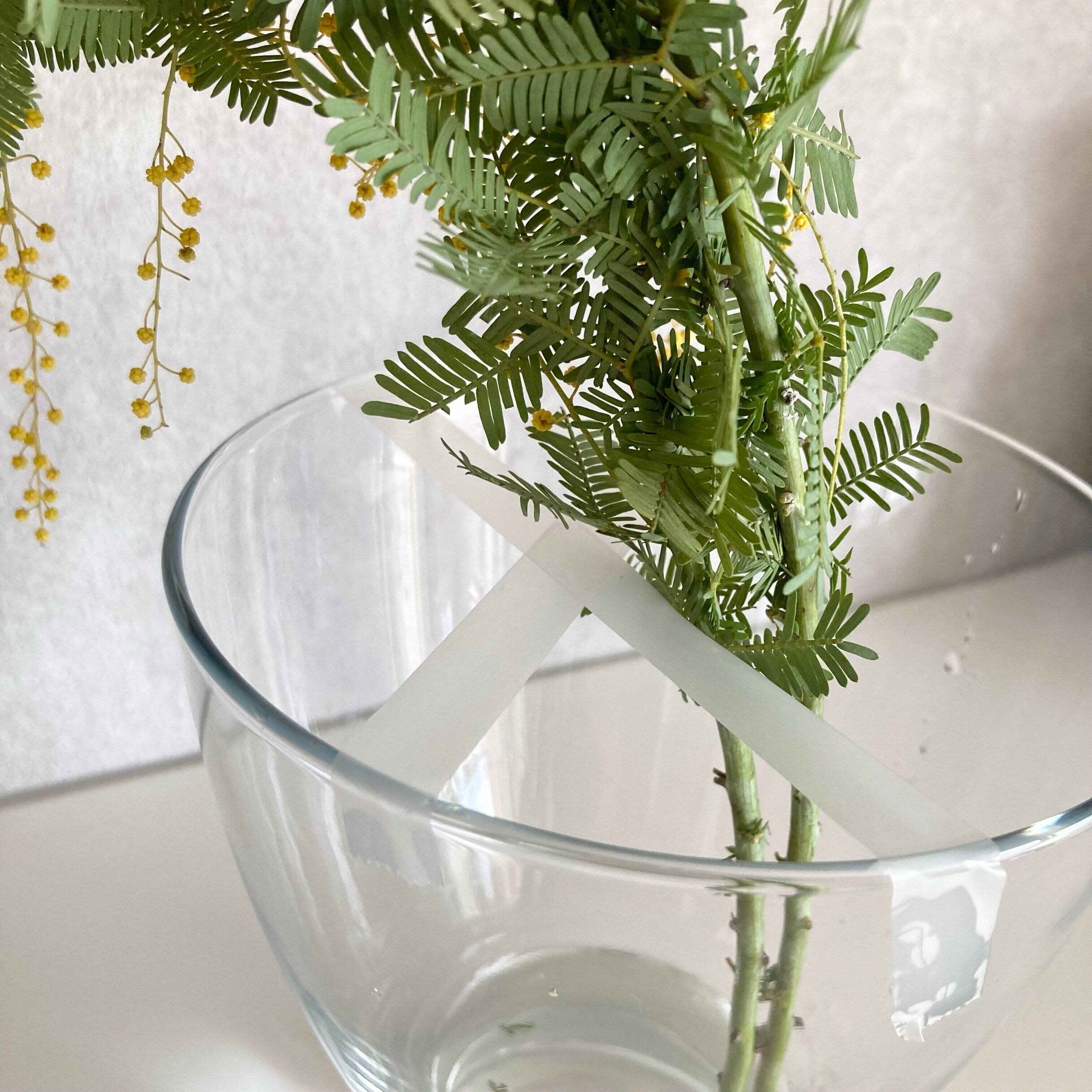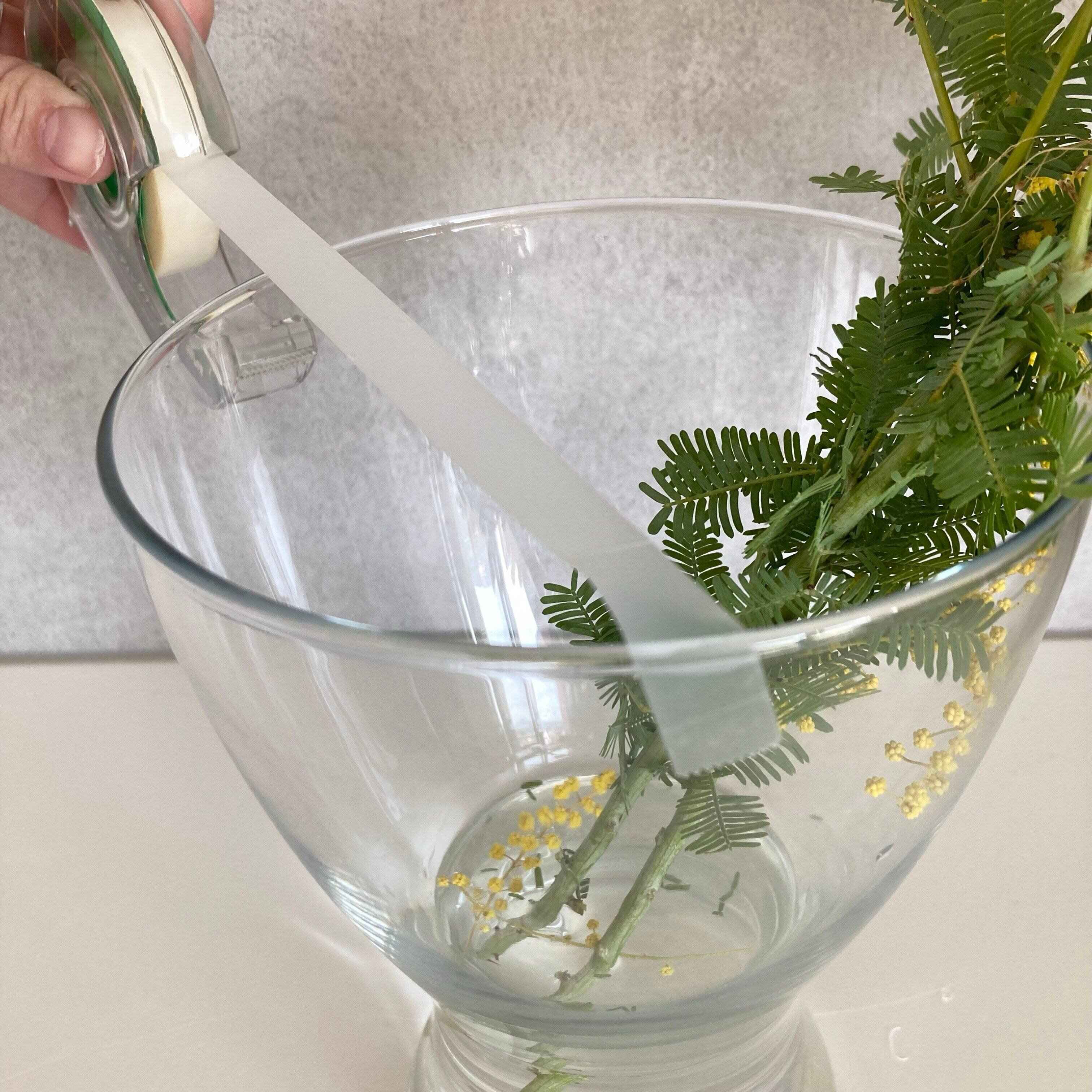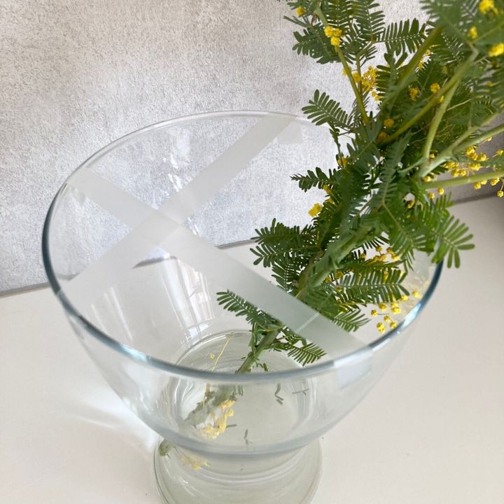 メンディングテープ、もしくはマスキングテープを写真のようにフラワーベースの口に1本貼ります。