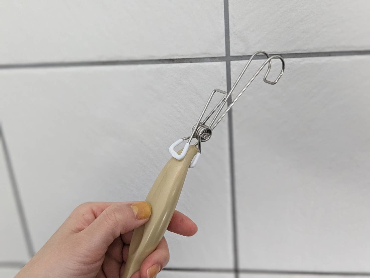そんな私のオススメは、セリアの「ステンレスピンチ」!滑り止め加工が施されているので、チューブタイプのクレンジングなどはもちろん、滑りやすいプラスチック製品もしっかりとホールドしてくれます。