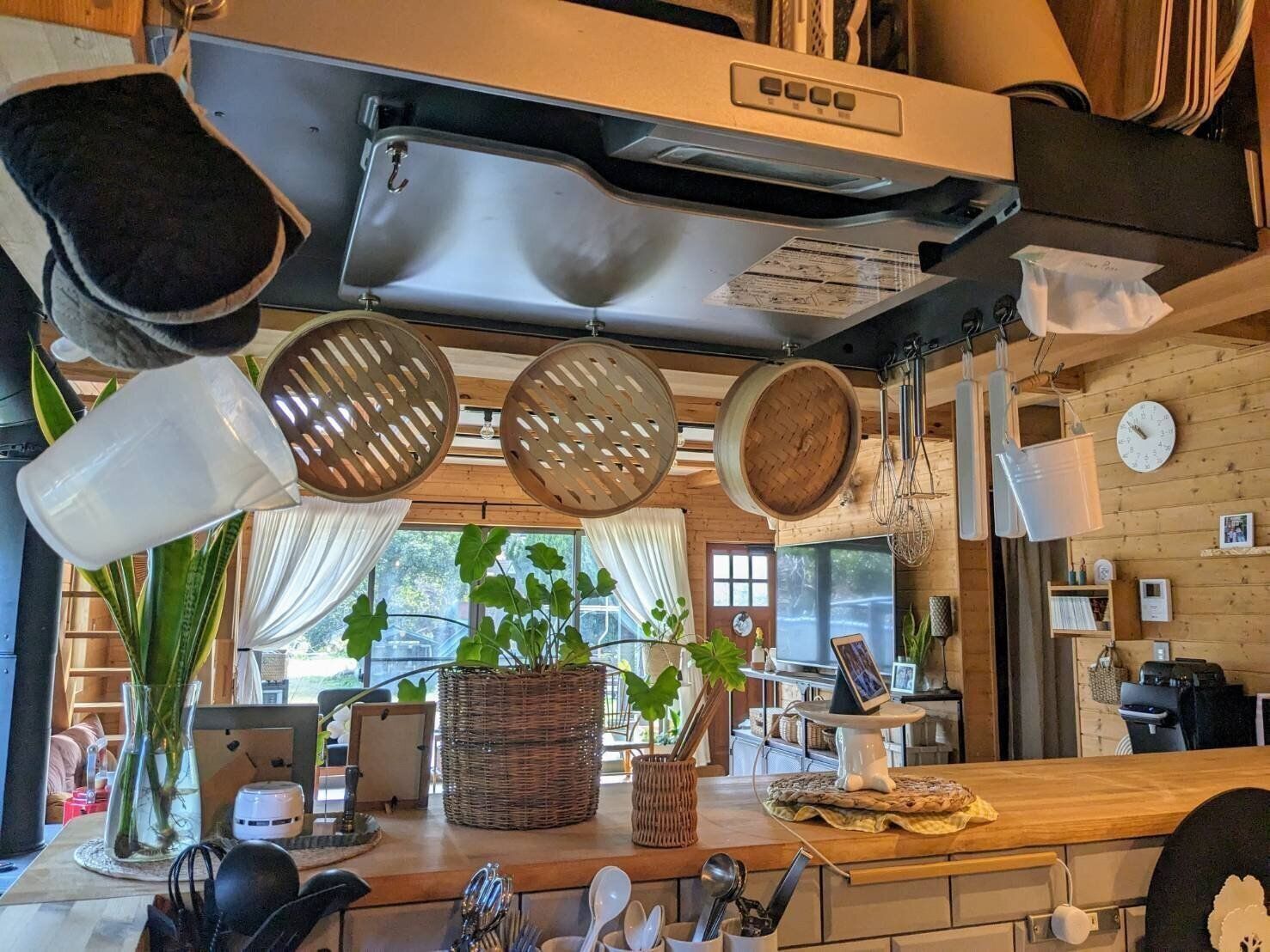 ポイントは、色!一軍調理器具の色味を黒やシルバー(ステンレス)に統一することで、出しっぱなしでも生活感を感じないよう工夫しています。