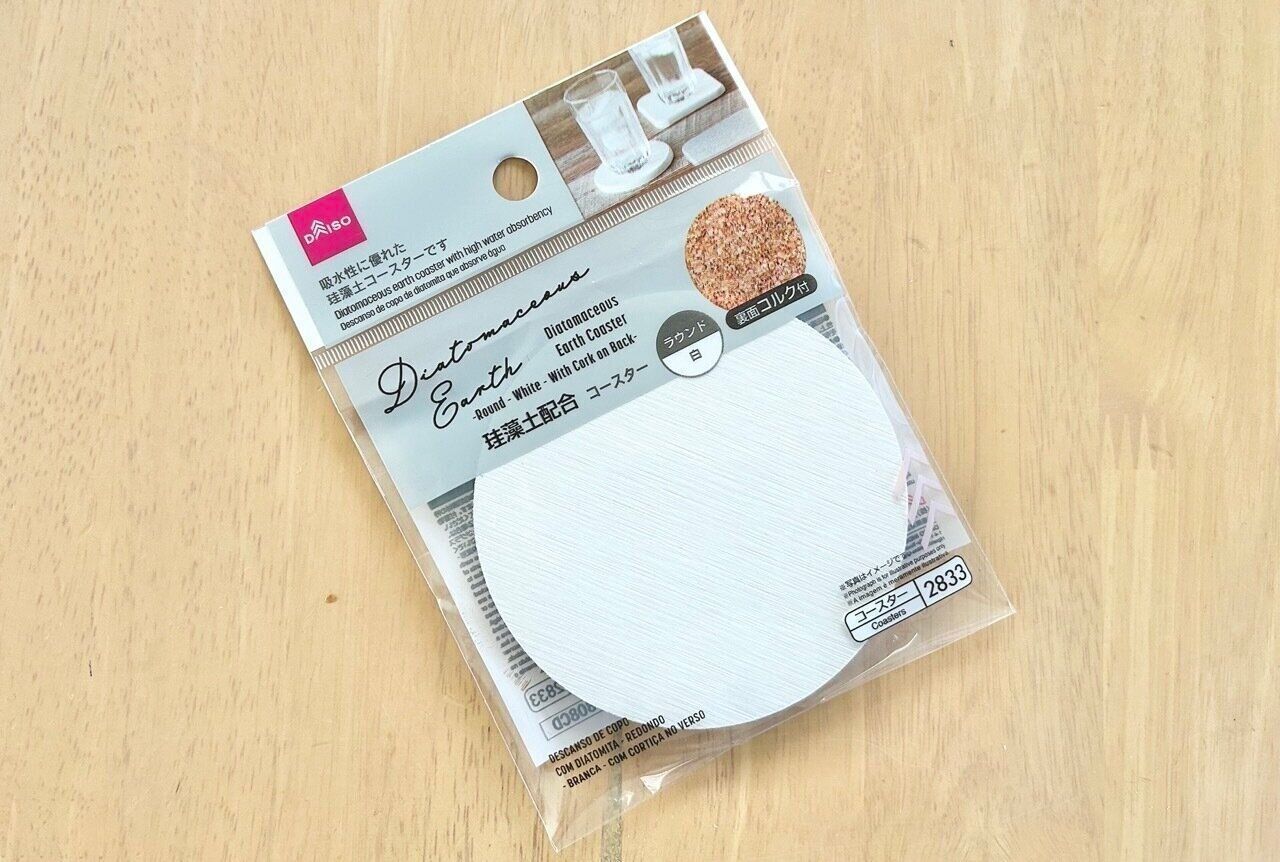 アレクサの「Echo Dot」には、そのかわいらしい丸い形にぴったりのダイソーの「珪藻土配合コースター」がおすすめ。