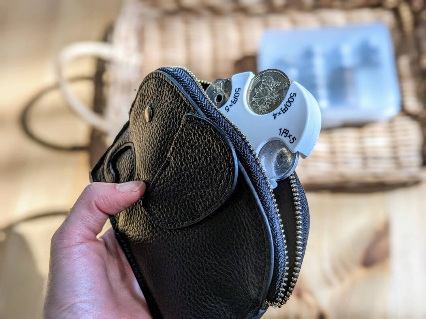 一見滑り落ちそうなデザインにも見えますが、内蔵されたストッパーがしっかりと硬貨をホールドしてくれます。硬貨1枚でも落ちることがないので、使っているうちに硬貨が減ってきても安心!