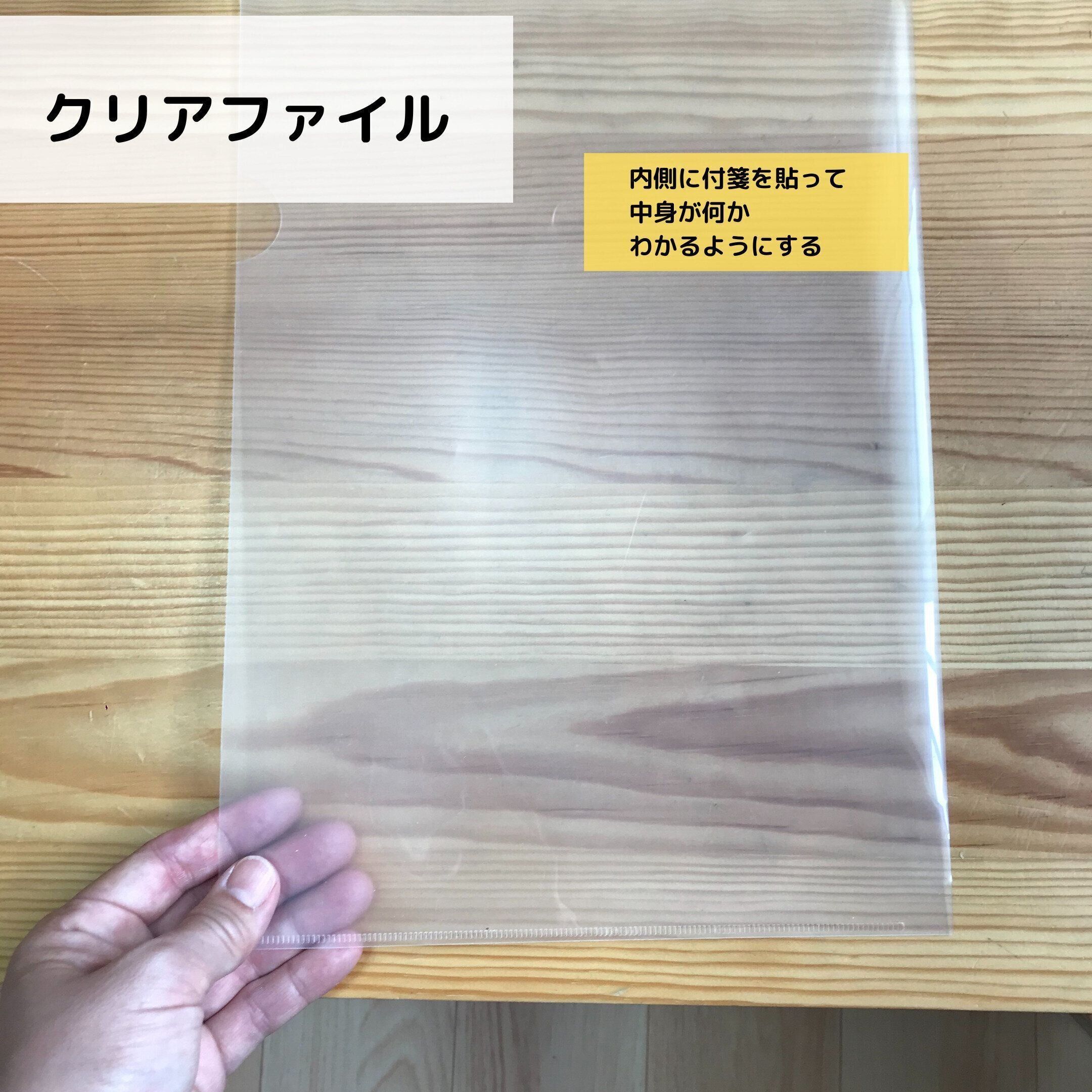 種類ごとに分けてクリアファイルにファイリングします。