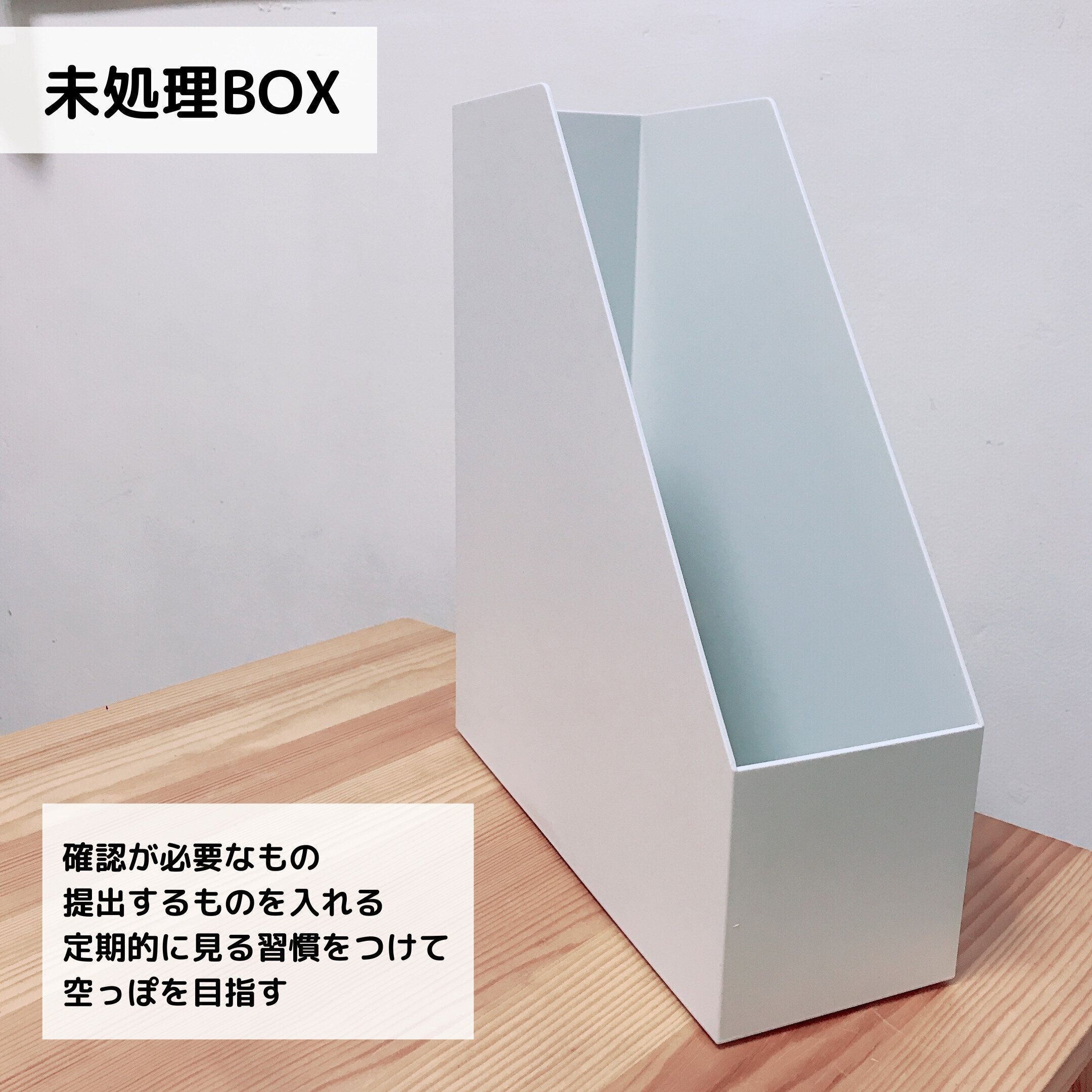 未処理のものは、未処理ボックスに入れて、いつも目につくところにおいて、中身を空にすることを目指しましょう。