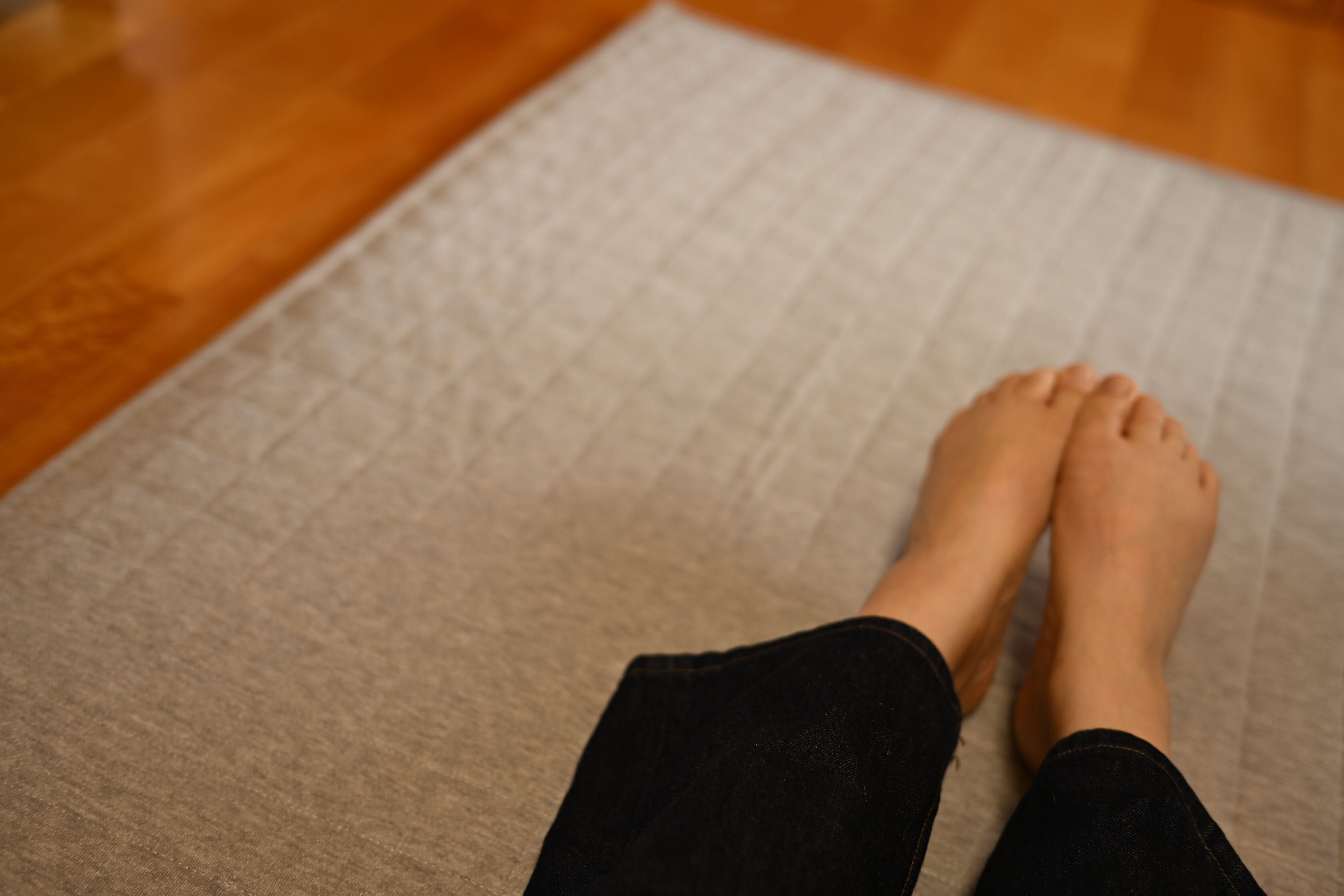 厚さ1cmの厚みがあり、低反発なので超快適!ごろ寝してしまうとトイレに行くことすら面倒になるほどやみつきになりますよ。