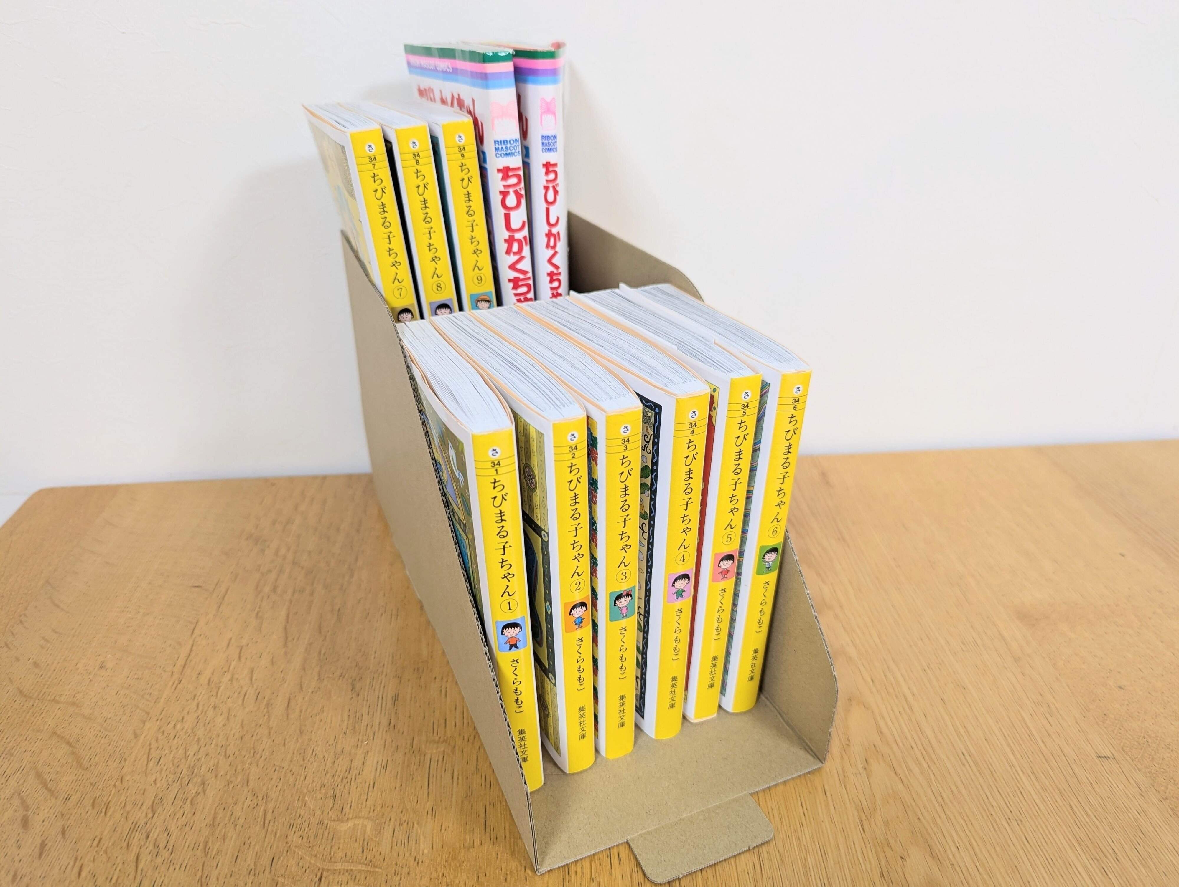 ダンボール製の2段式で、コミック以外にも、文庫本や新書などが前後に約6冊ずつ収納OK。カラーはクラフトとホワイトの2色から選べます。