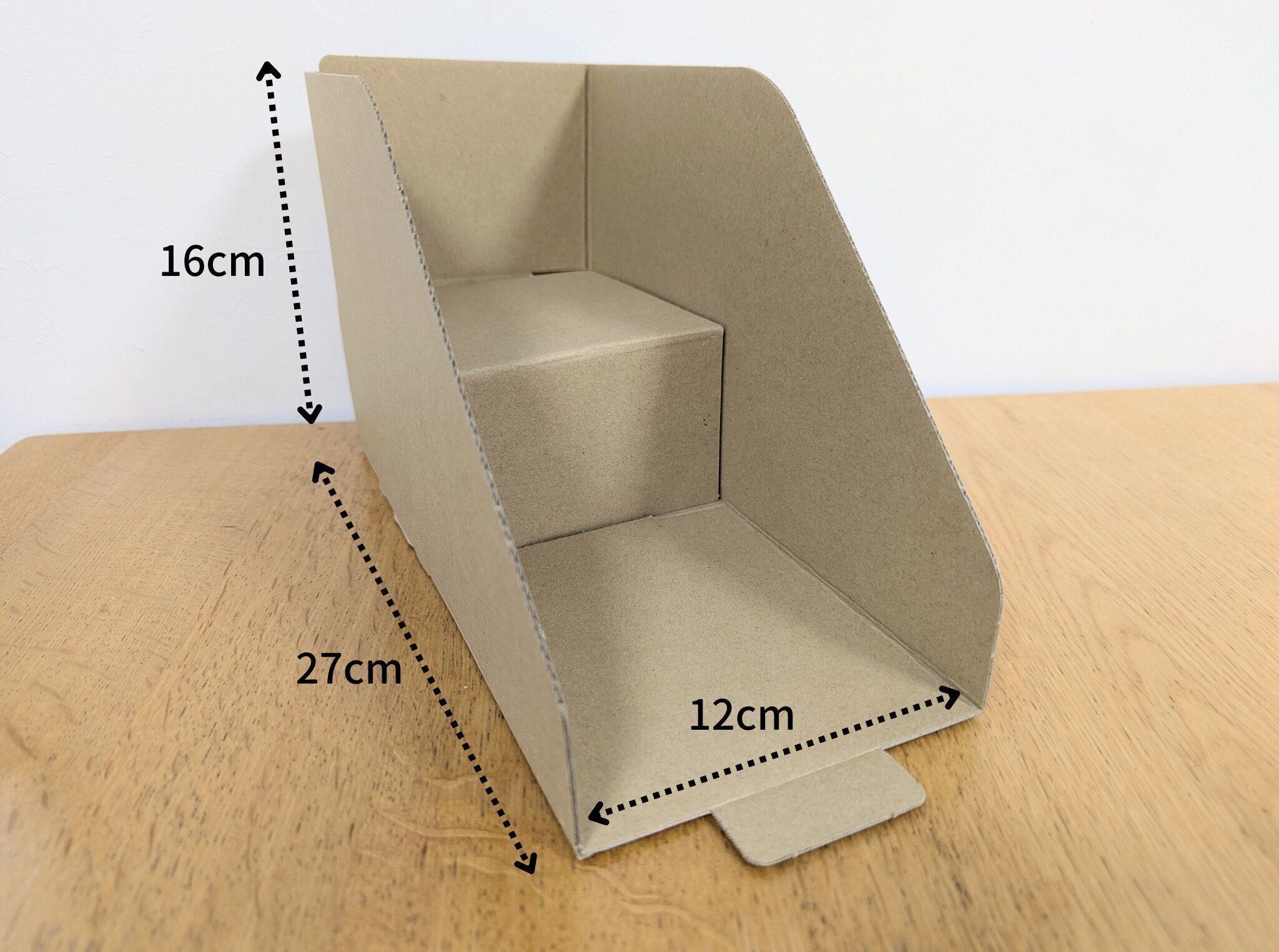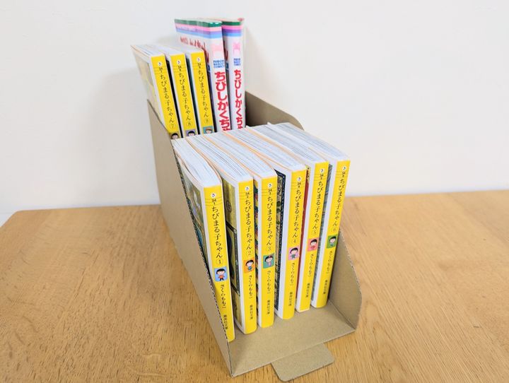 さらに、ブックエンドとしても機能してくれて一石二鳥。ダンボール製の組み立てるタイプなので、使わない時は平らにたためて省スペースです。