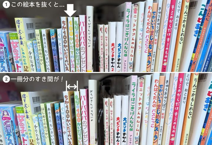 さまざまな装丁は絵本の楽しみな一方で、すっきり収納したい時には、そのにぎやかさが悩みの種にも。さらにハードルを上げるのがサイズ問題。小さいものから大きいものまでまちまちで、きれいに収納するのは至難の業です。