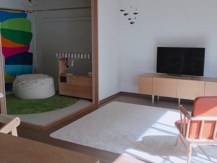 遮る家具がないので、おもちゃを広げやすく、また片づけや掃除がしやすいのもメリットだと感じています。