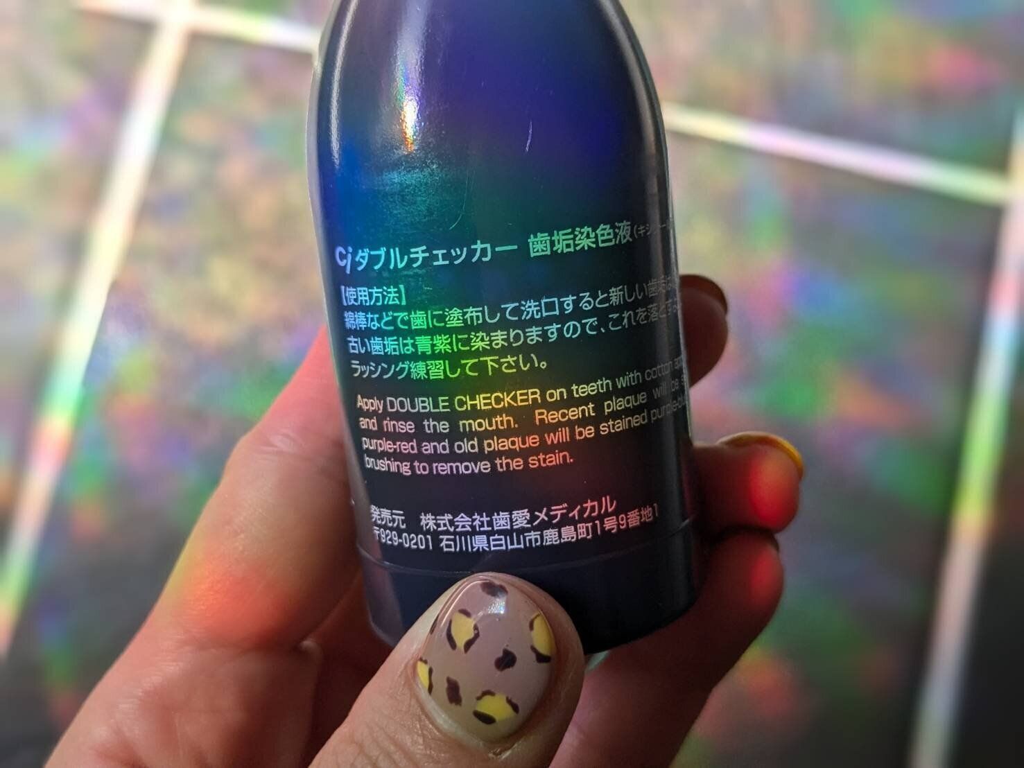 実は筆者宅で使っているのは、よくある「赤」の染色液ではなく、「紫」なんです。比較的新しい歯垢は「赤紫」、古い歯垢は「青紫」に染まるようになっています。