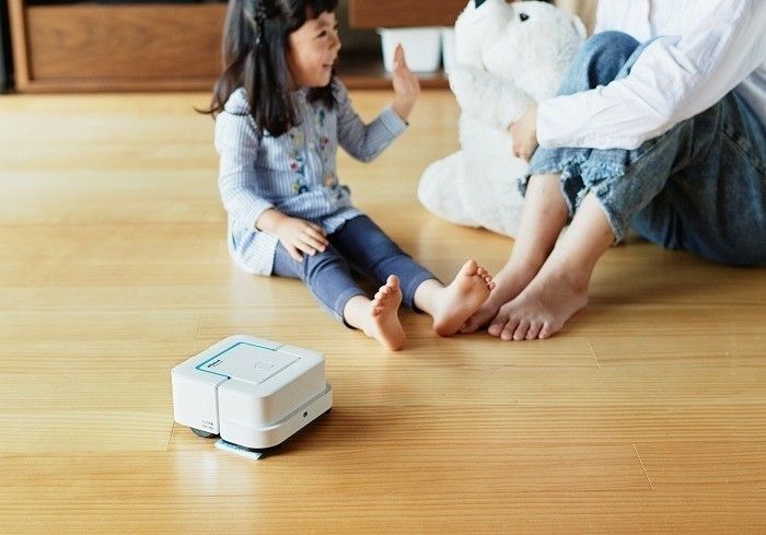 子どもと比較するとその小ささは一目瞭然。狭いところにもスイスイ進んで、隅っこもしっかり拭いてくれます。障害物を感知し、水拭きのジェット噴射は家具などにかからないとか。「1つでも家事が減るとどれだけ気持ちが楽か」とひなたママ。ブラーバ ジェットがザラザラ汚れをお掃除してくれるおかげで、子どもたちとゆっくり絵本を読む時間ができました。