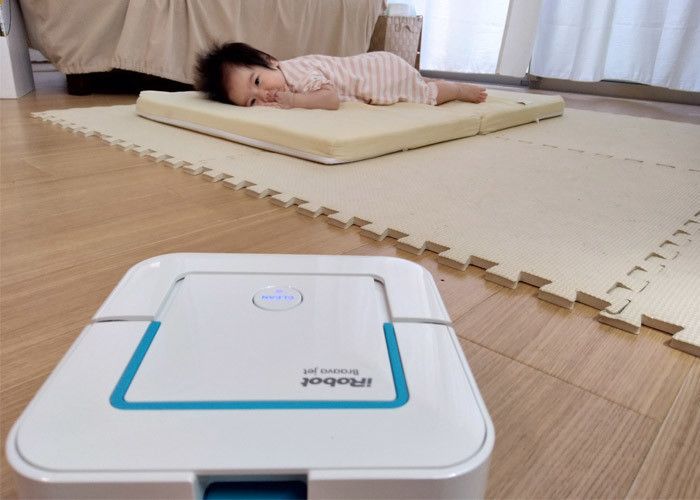 使ったのは、あの、ルンバでおなじみアイロボット社の「ブラーバ ジェット」。乾拭きと水拭きの両方ができて、乾拭きでは、掃除機をかけたあとなのにゴミがどっさり取れ、水拭きのあとは床がピカピカに。「コンパクトで音がとっても静かなので、娘が寝ているときでも起こすことなく部屋中をお掃除してくれました」