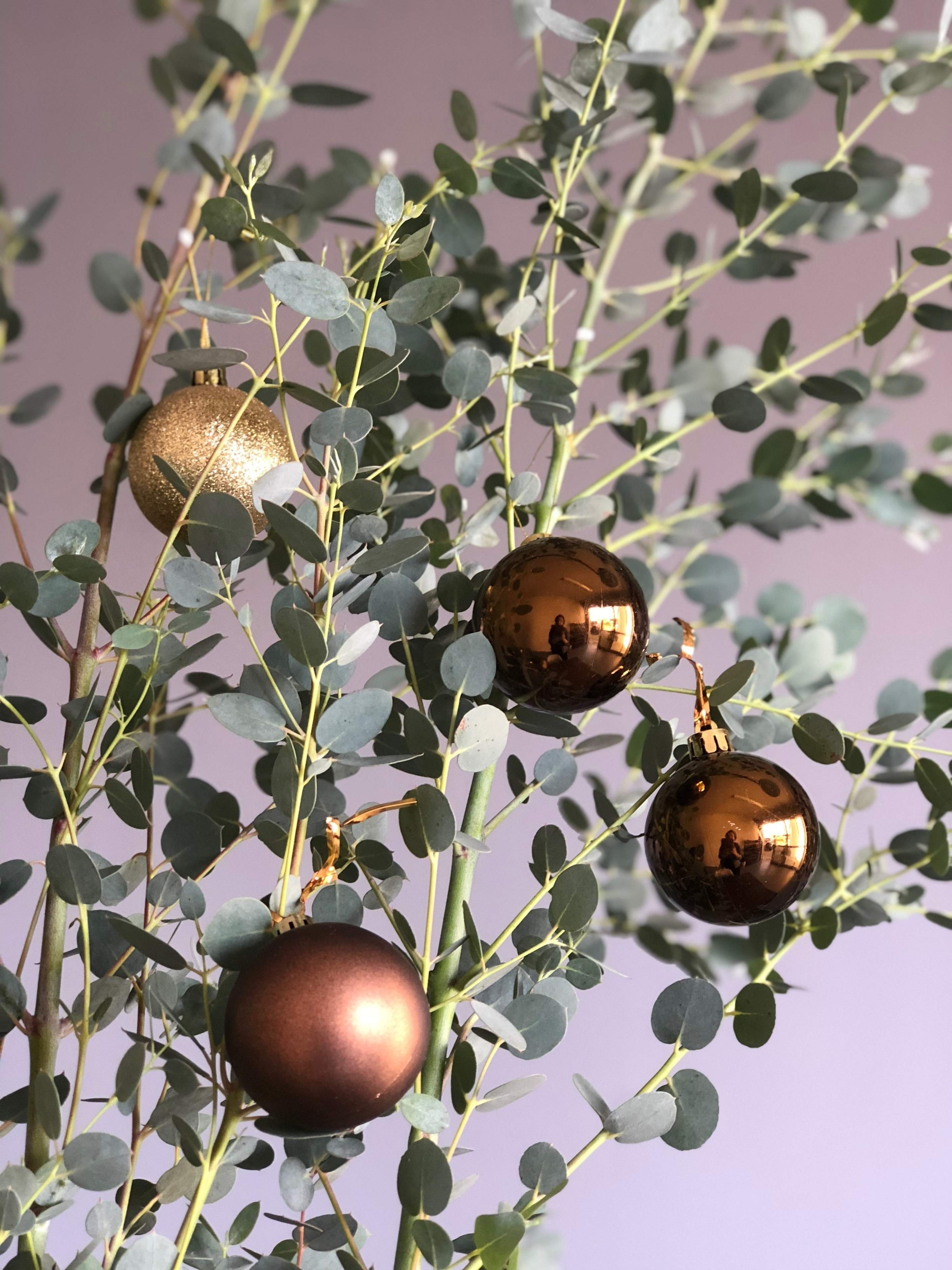 フラワーベースに生けた枝に、100均などで買えるオーナメントを使って飾ればクリスマスツリー変わりになっちゃいます!