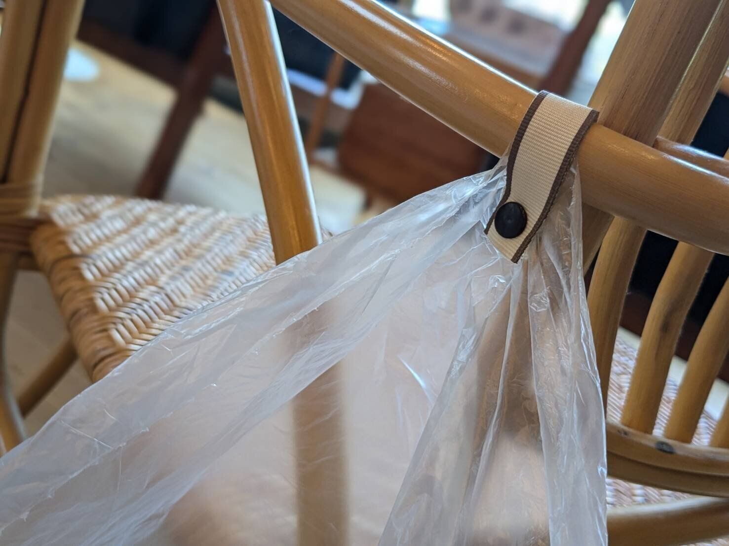 また、実は持ち手なしのゴミ袋でも使えます。スナップボタンでゴミ袋をパチっと挟んでしまえば、しっかりと固定することができますよ。ピクニックや花見はもちろん、バーベキューやキャンプなどでも使える裏技です。