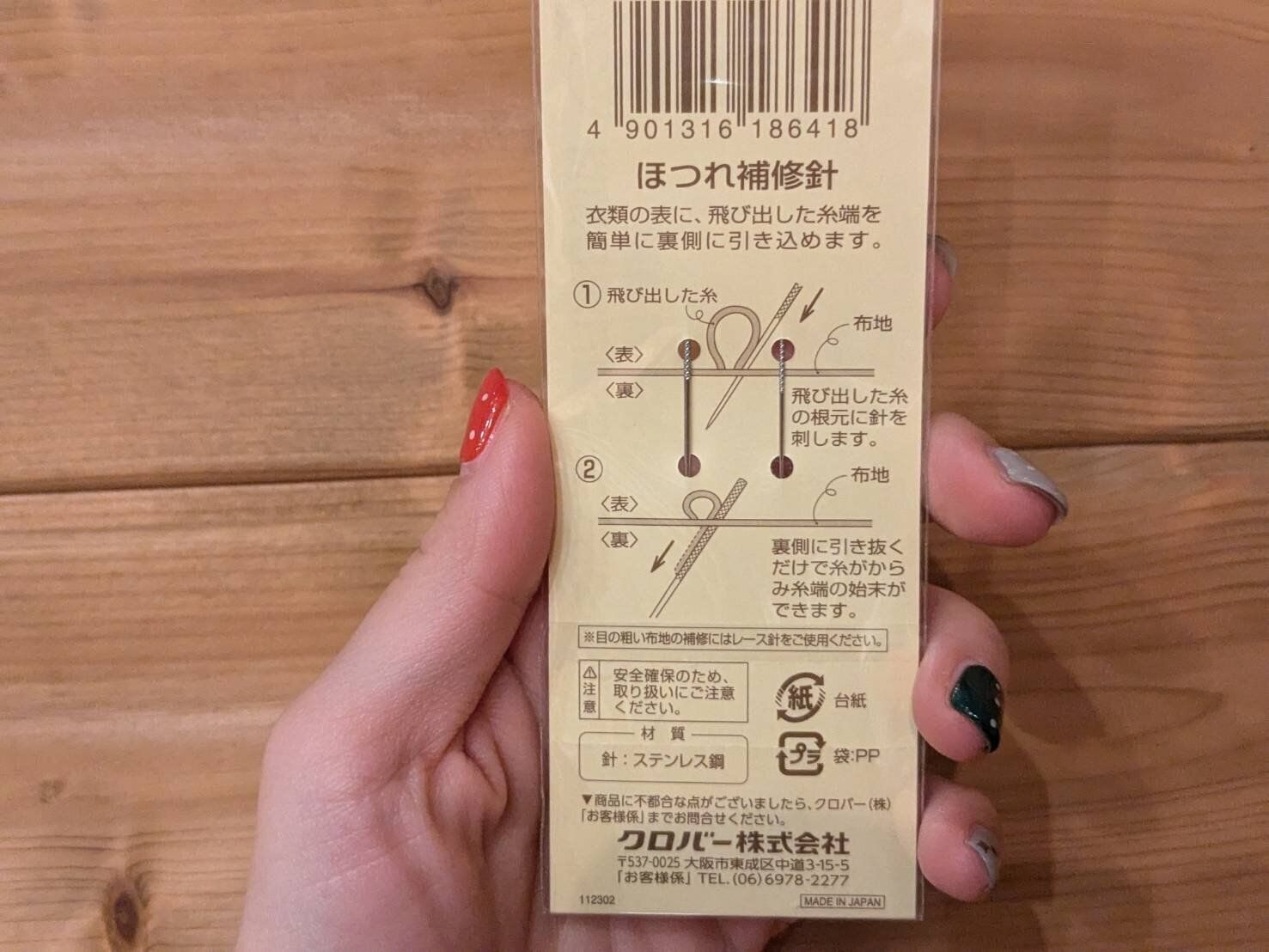 やり方は至って簡単!飛び出した糸の根元に針を刺し、裏側に引き抜くだけでOKです。針仕事がとにかく苦手な不器用筆者でも、難なく使いこなすことができていますよ。