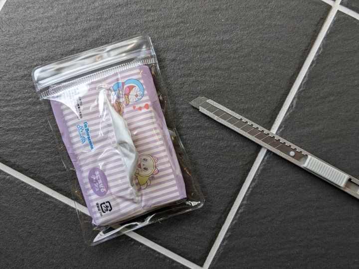 わが家ではクリアにカッターで切り込みを入れて、子どものポケットティッシュケースにしていますが、オーロラよりも柔らかいぶん、取り出しがスムーズです。入れるモノに合わせて、どちらのカラーにするか選んでみるのもオススメですよ。