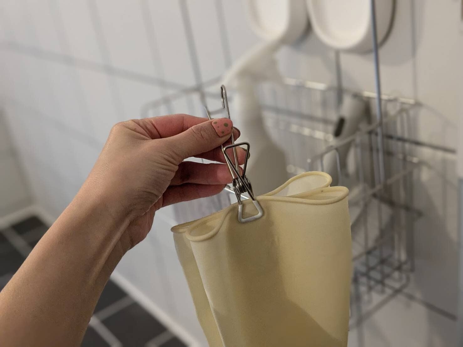 掃除道具を吊るしておくのに役立つピンチも、やはりセリアがオススメ!『強力ハンギングステンレスピンチ 3P』(110円)には、滑り止め加工が施されています。掃除で使うゴム手袋などの滑りやすいアイテムはもちろん、チューブタイプの洗顔料などを挟むのにもピッタリ!